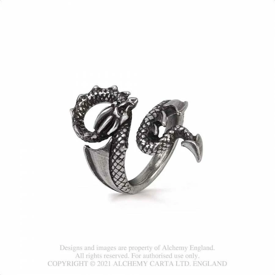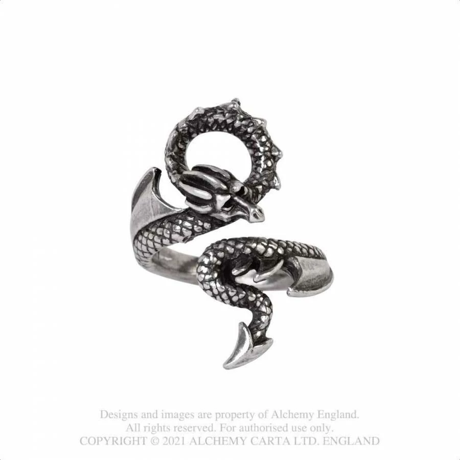 An exquisite polished pewter dragon ring, this tortuous personal miniature dragon coils itself around your finger.