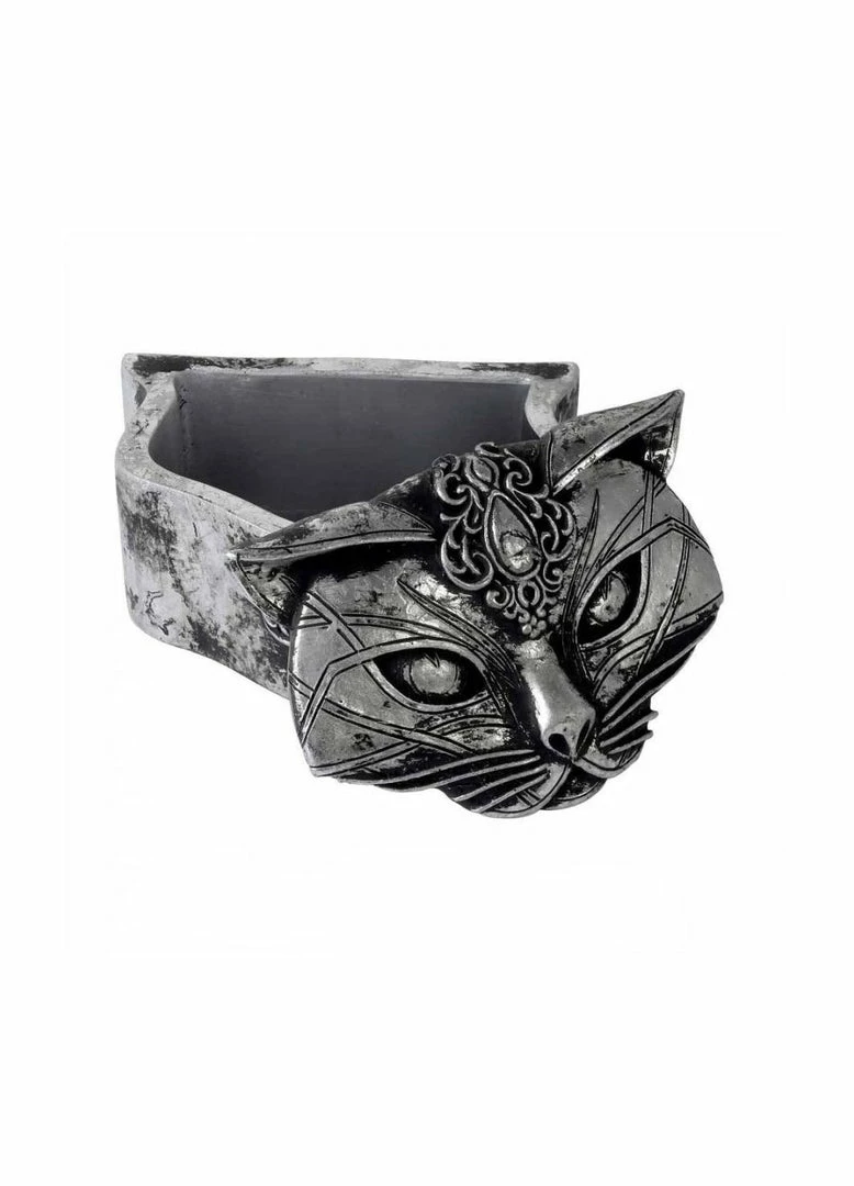 This beautiful trinket box from Alchemy features their stunning Sacred Cat design. Hand finished and given an antique silver effect, this gorgeous box is the perfect size for keeping your trinkets safe. With a non-slip base, and a full removable lid, this jewellery box measures approximately H: 6cm x W: 10.5cm x D: 7cm