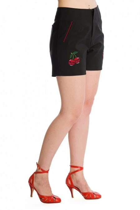 You’ll adore these dressy black shorts from Banned Apparel. Made from soft stretch fabric that is fitted for effortless style, these shorts are designed with a zip up fly and red cherry contrast print. These amazing flirty shorts are your new wardrobe staple!