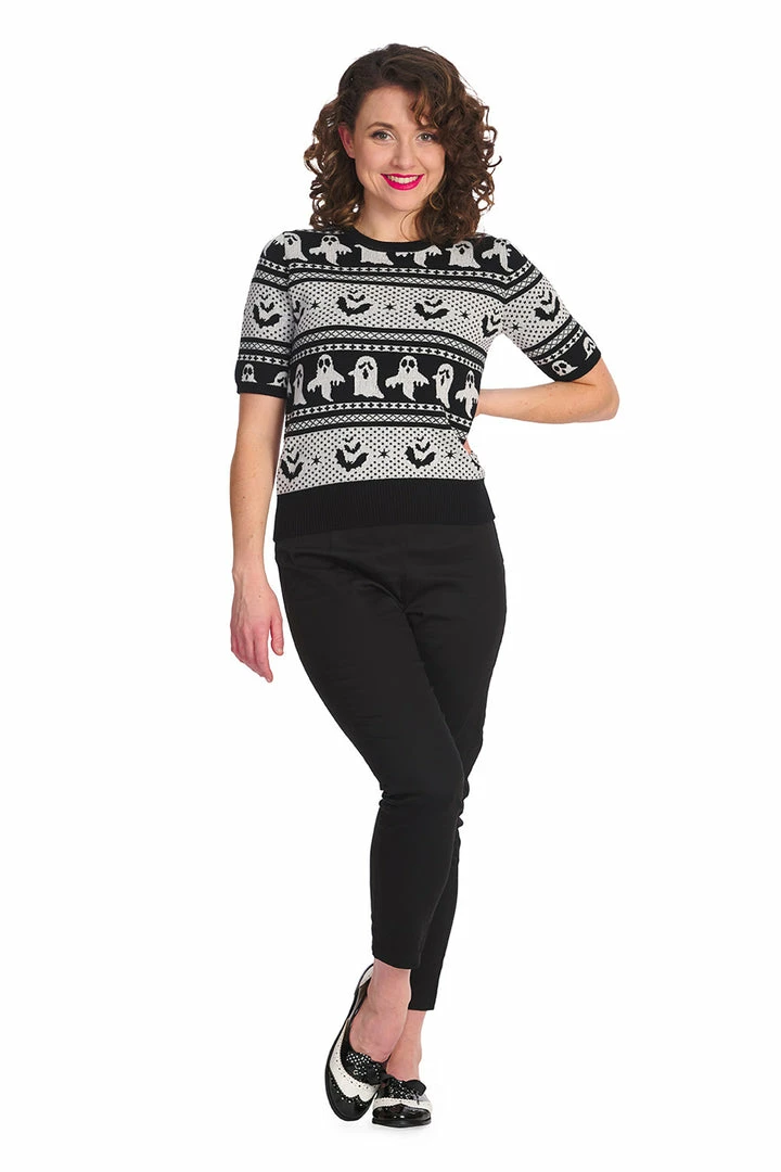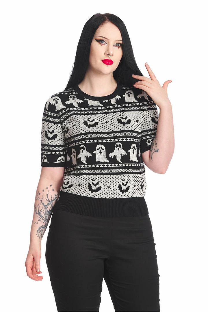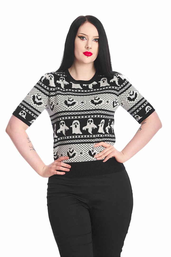 Fabulous short sleeve jumper from Banned Apparel with round neckline and a ghostly design.