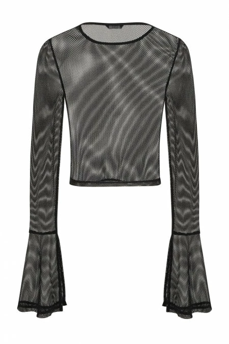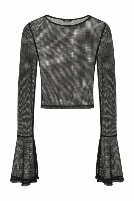 This gorgeous mesh top from Banned is made from a sheer black mesh. Featuring a round neckline and long sleeves which are fitted most of the way and then flared at the cuff for added drama!