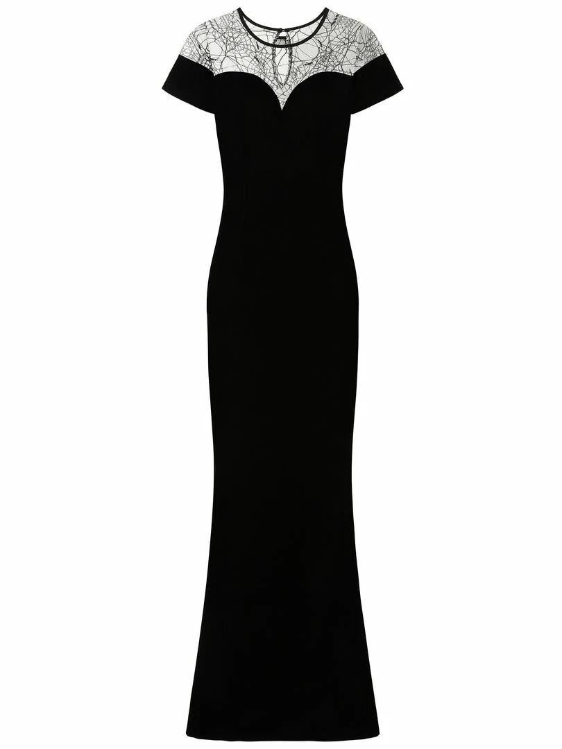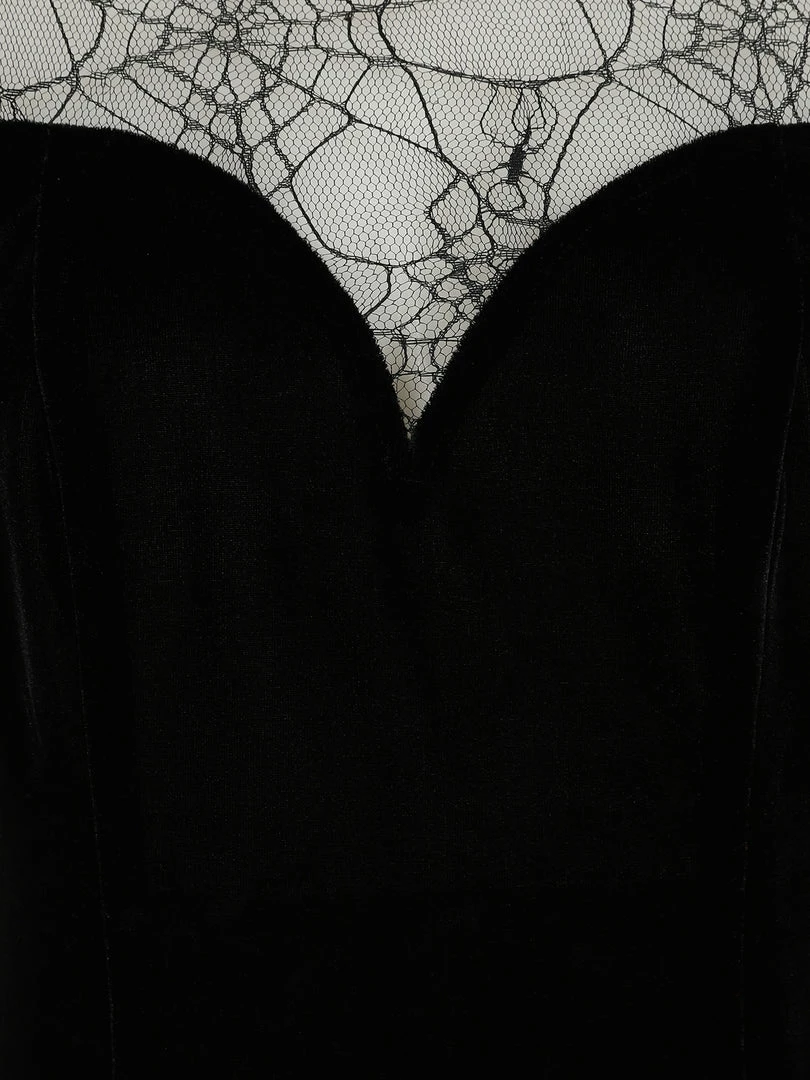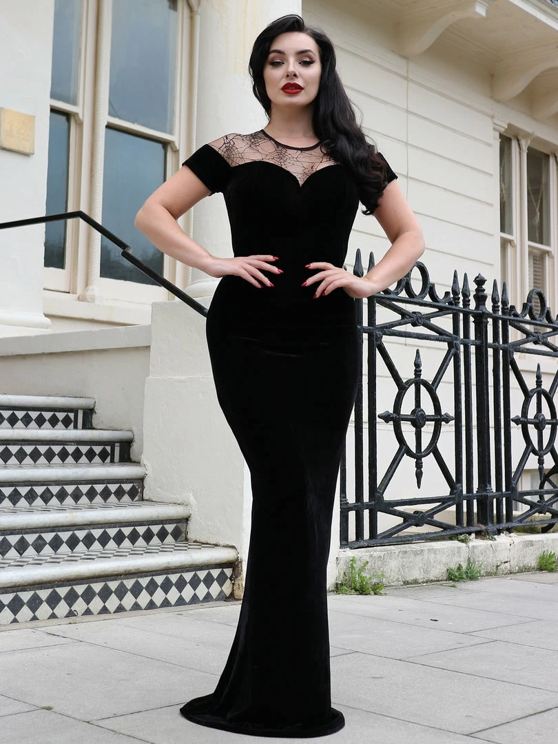 Prepare to raise some temperatures in the ravishing Collectif Arca Dark Queen Maxi Dress. Full length, fitted velvet gown that flares slightly at the base to maximise and enhance your shape. Featuring short sleeves, a sweetheart neckline finished at the top with an exquisite spiderweb mesh and fastening via a zip down the centre-back, with a button at the back of the neck. This dress is simply exquisite.