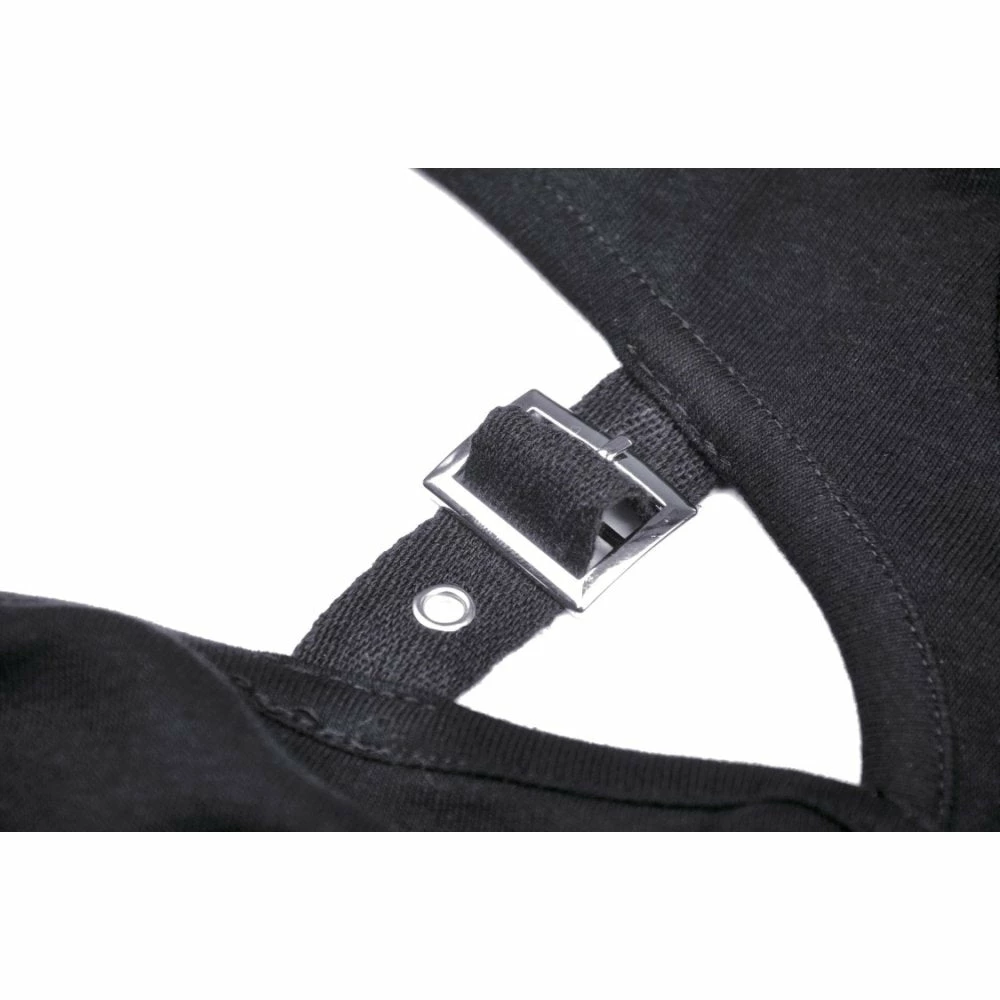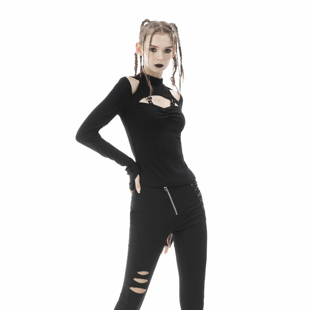 Gorgeous long sleeved top by Dark in Love with cut out shoulders and neckline with a sweetheart bust. It features cute buckles and straps at the bust and thumb holes. It fastens with a button at the back of the neck.