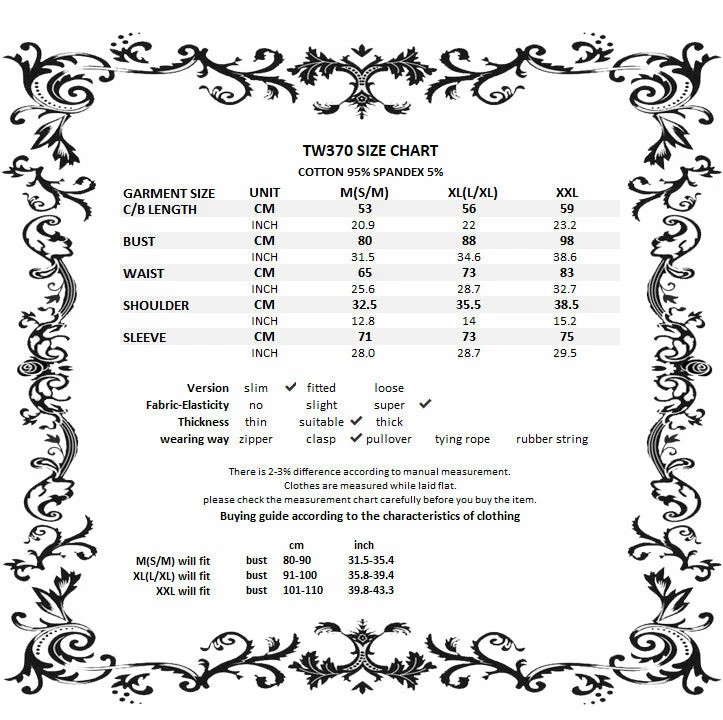 For the perfect fit please see Dark in Love’s size guide in the images.