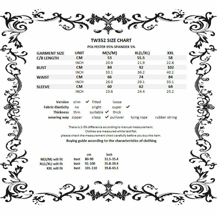 For the perfect fit please see Dark in Love’s size guide in the images.