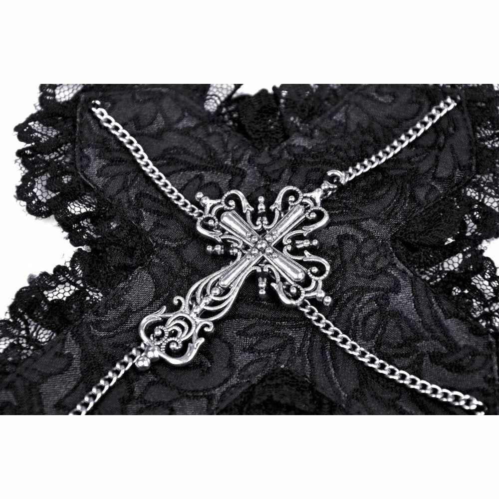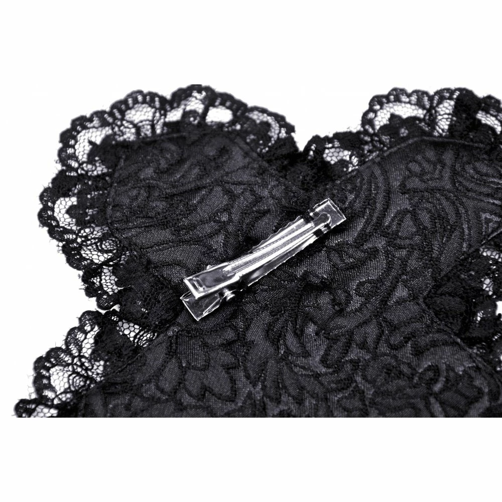 Lovely elegant clip on black cross hair decoration made from black lace with metal cross and chain detailing. This awesome headgear is the perfect accessory to set off your outfit and looks awesome on.