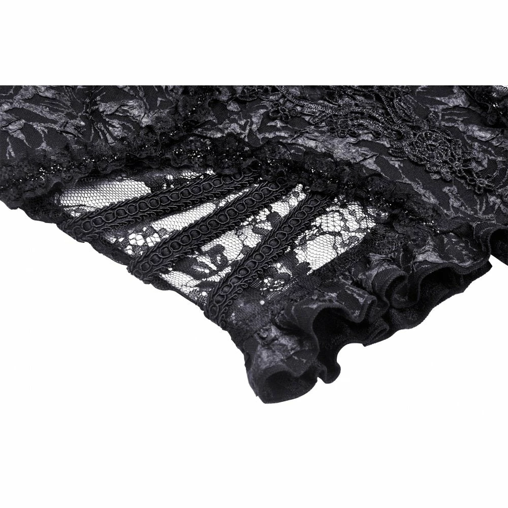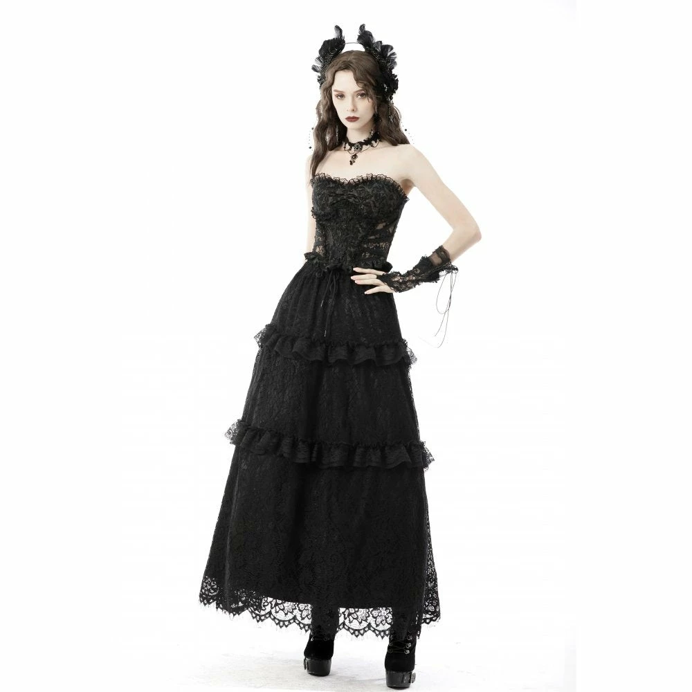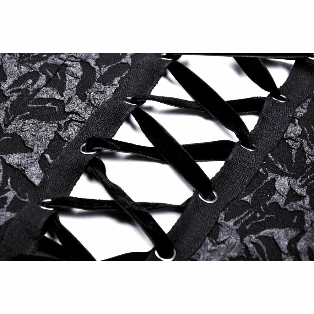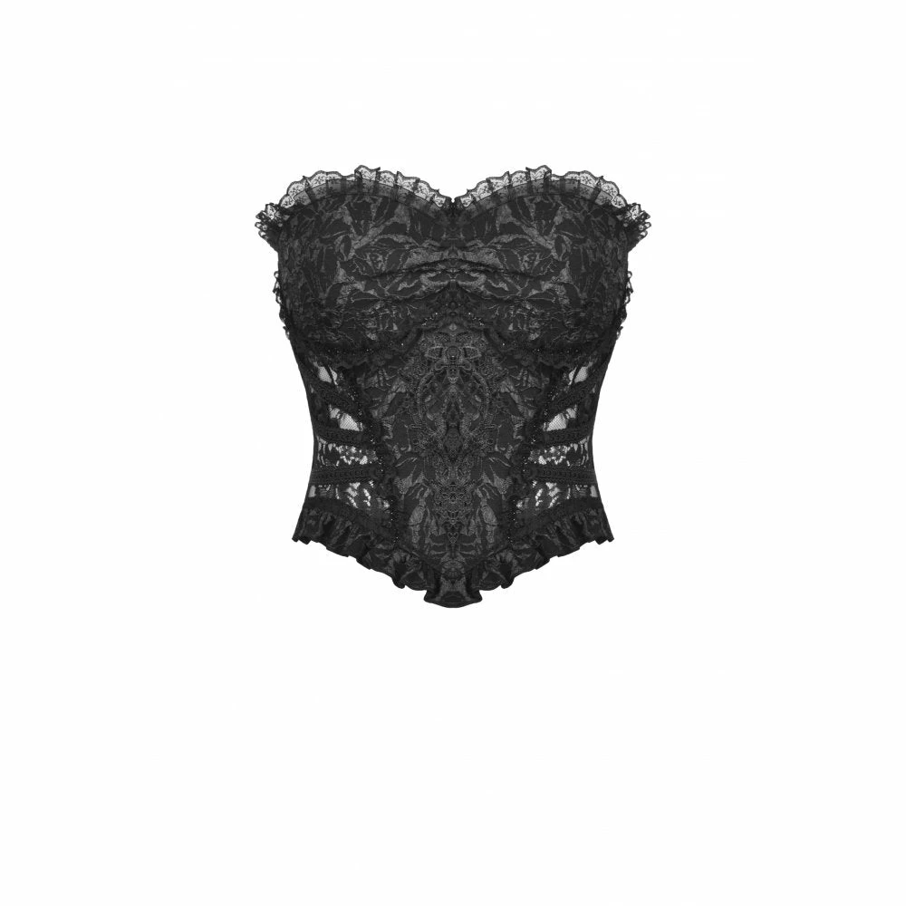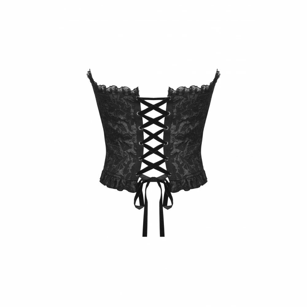 Seductive and elegant black corset top by Dark In Love with black ribbon lace up back. This gorgeous head turning corset top features delicate lace detailing and looks amazing on!