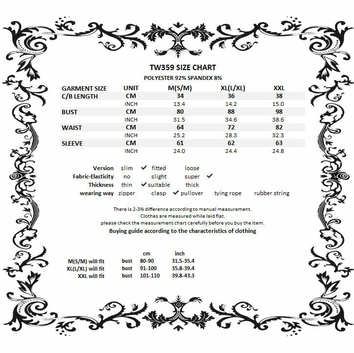 For the perfect fit please see Dark in Love’s size guide in the images.