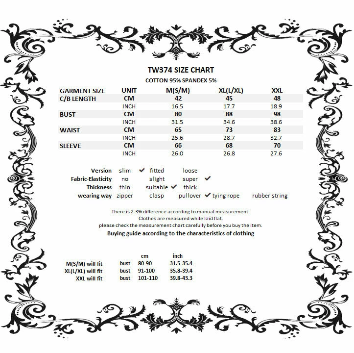 - For the perfect fit please see Dark in Love’s size guide in the images.