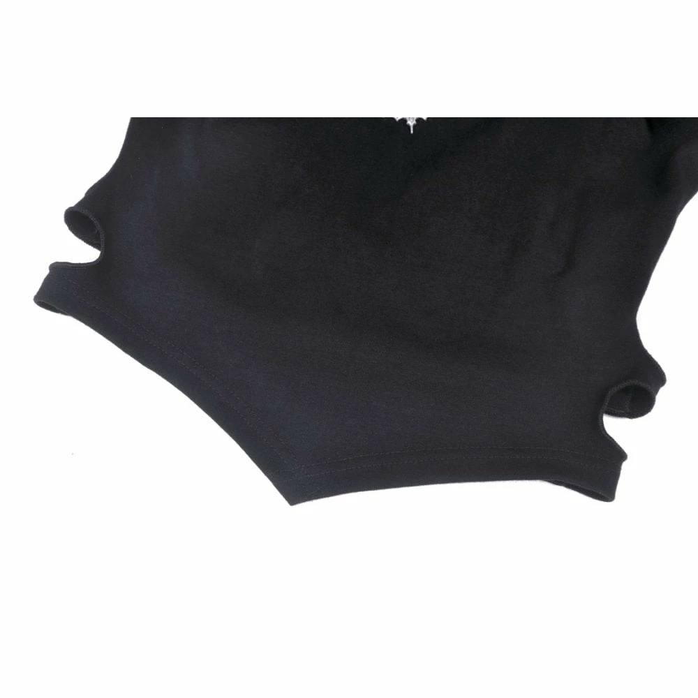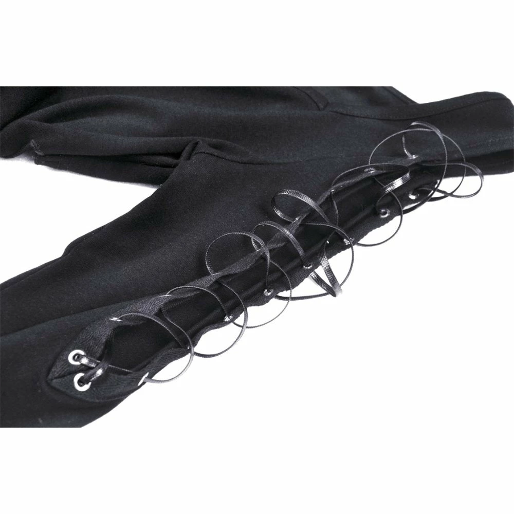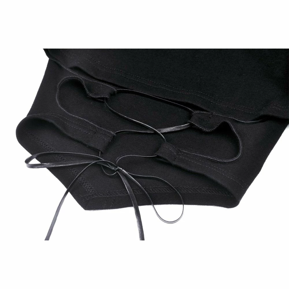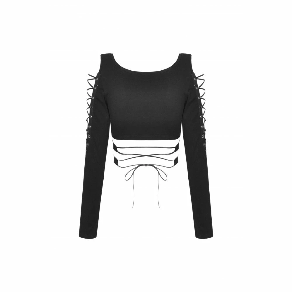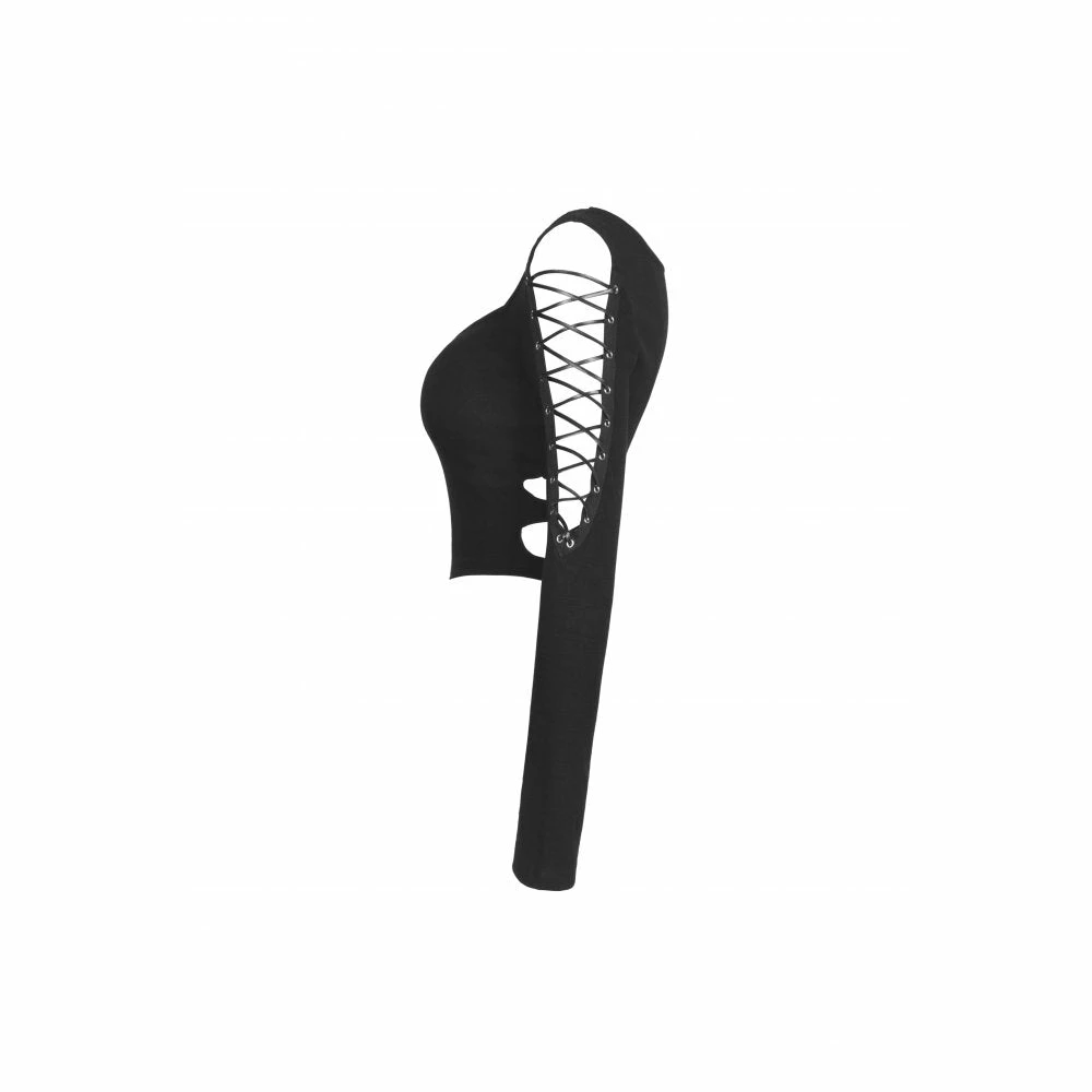 Stunning black long sleeve top from Dark in Love made from a soft stretchy cotton fabric in a body hugging fit! This sexy and edgy crop top features a scoop neck with metal bat and pointed hem plus sleeve cut outs with statement lace ups. Looks amazing worn with a skirt or skintight trousers!