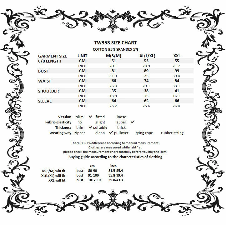 For the perfect fit please see Dark in Love’s size guide in the images.