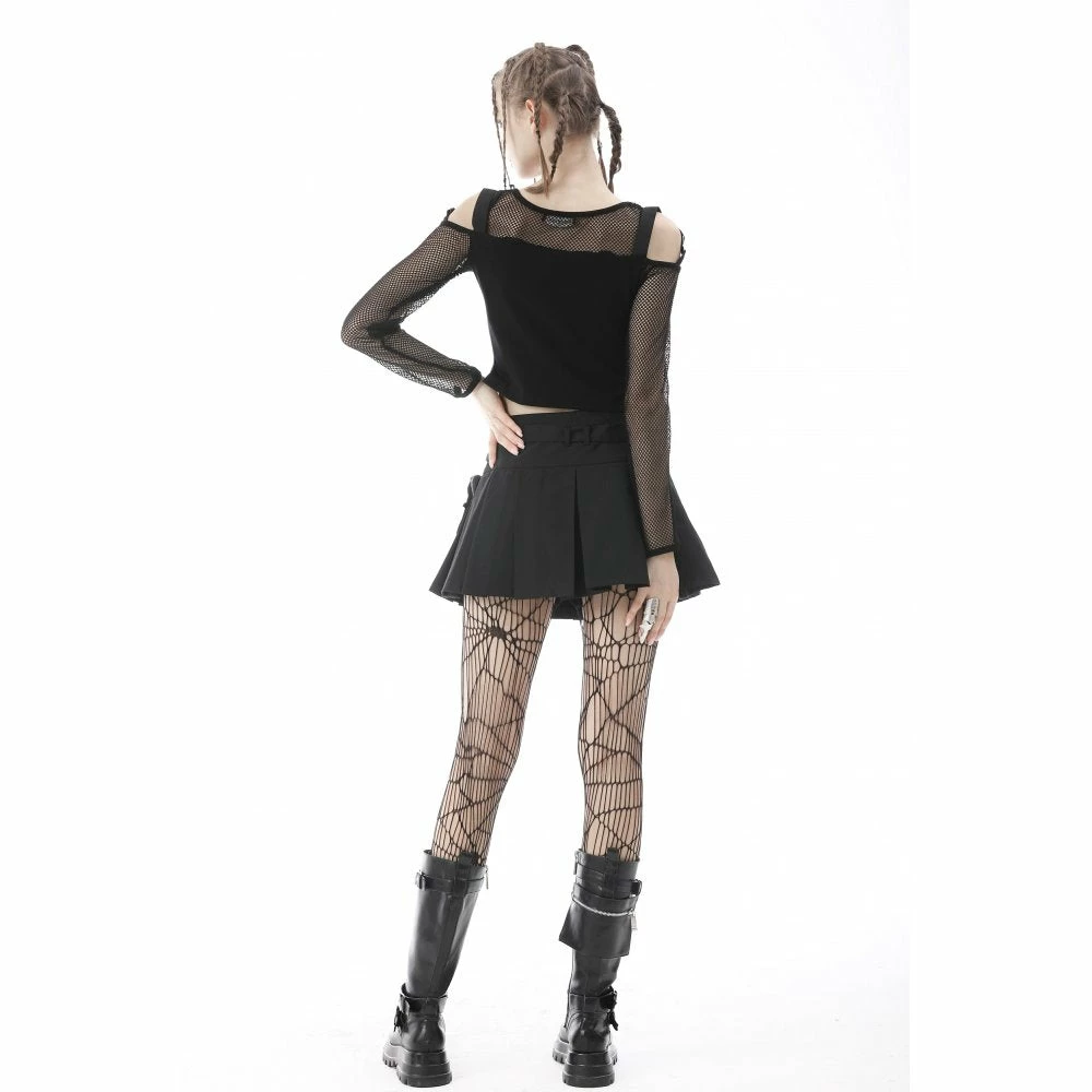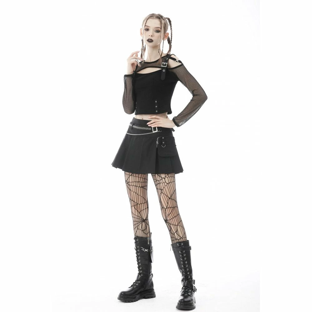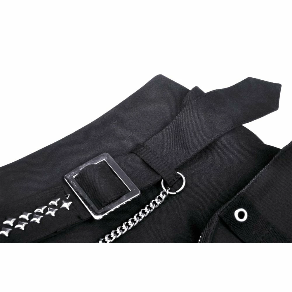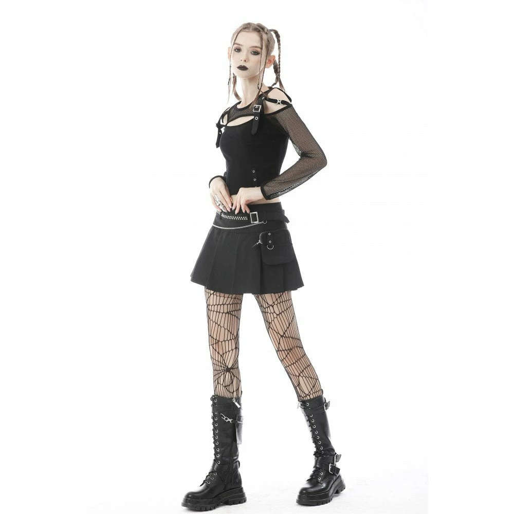 Stylish and versatile black mini skirt from Dark in Love made from a soft fabric in a classic pleated style! This must-have skirt features an attached zip up bag to store all your essentials and also has metal hardware details and chains to give it a little extra attitude.