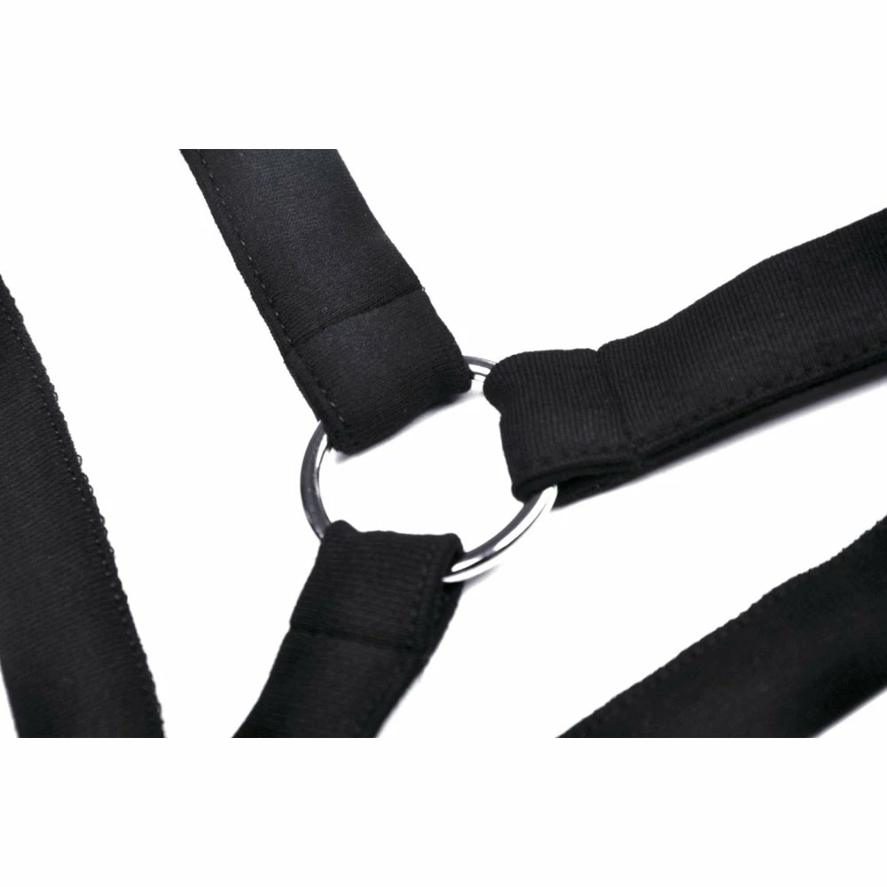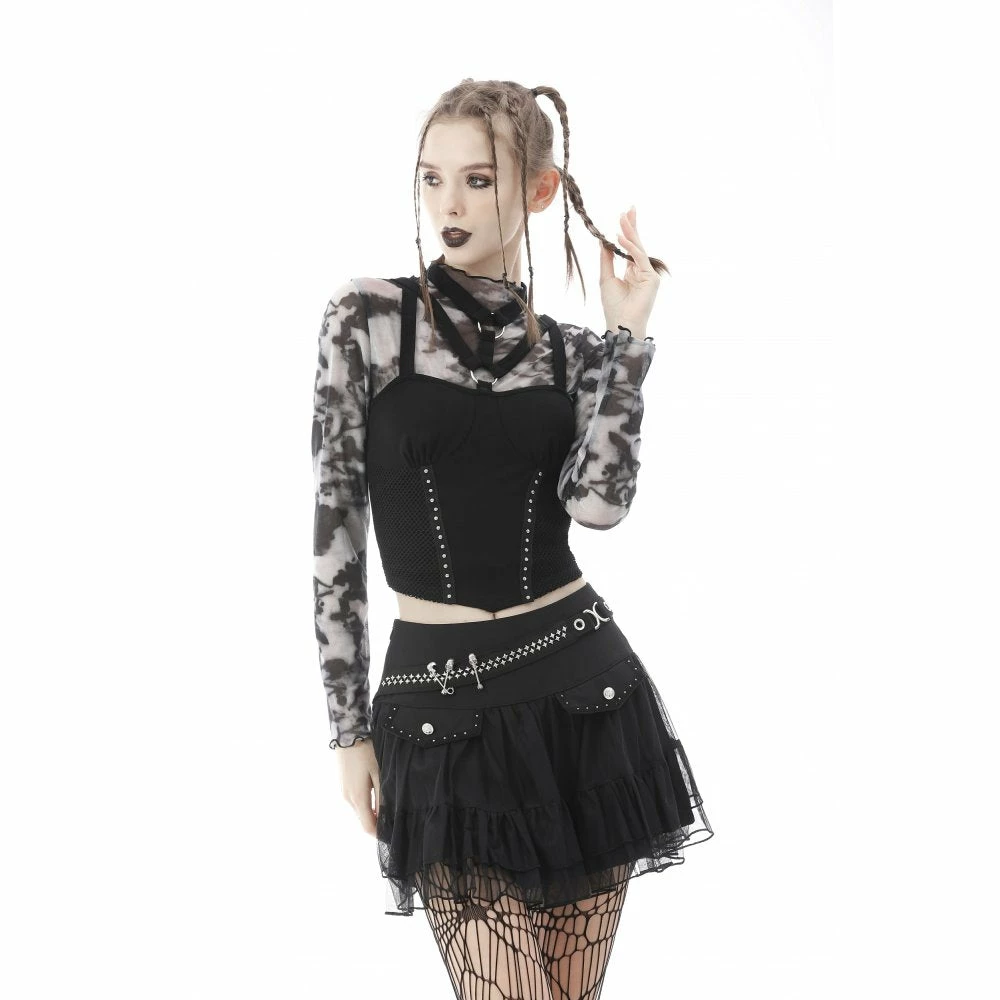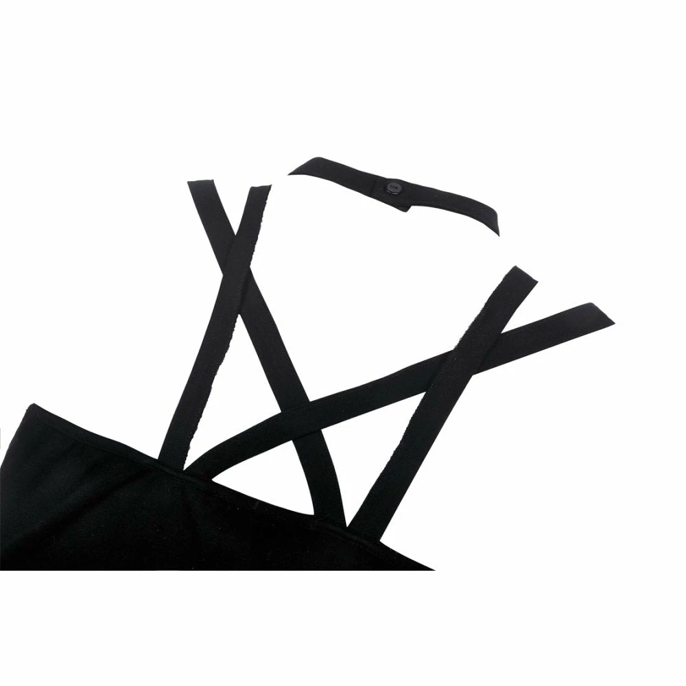 Striking black sleeveless top with unique strap design from Dark in Love. This stunning and edgy halter top features strap details and is made from a stretchy cotton blend fabric that is fitted to show off your curves to perfection. Looks amazing on with built in bra shaping and stunning metal stud detailing!