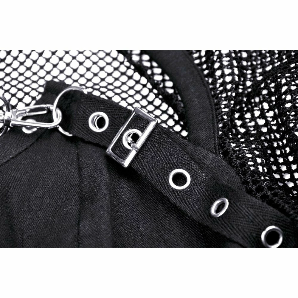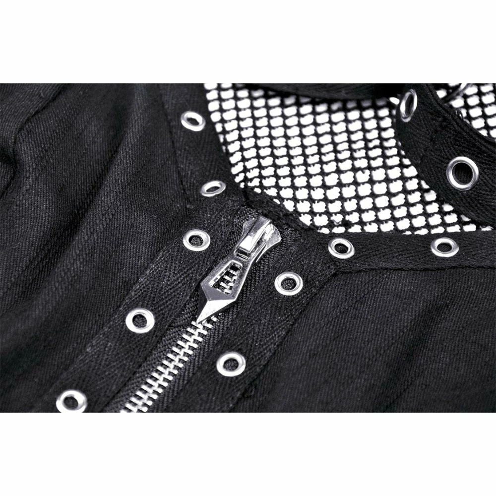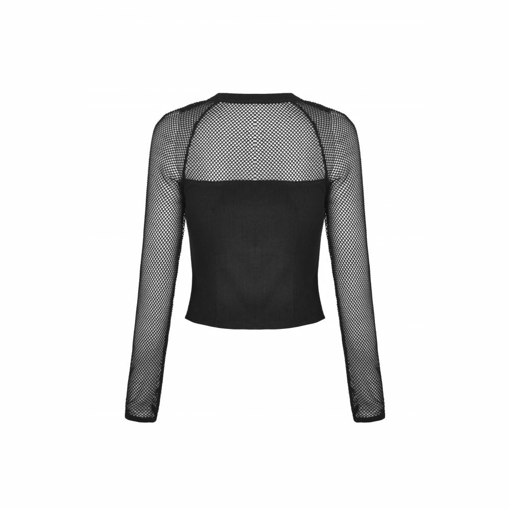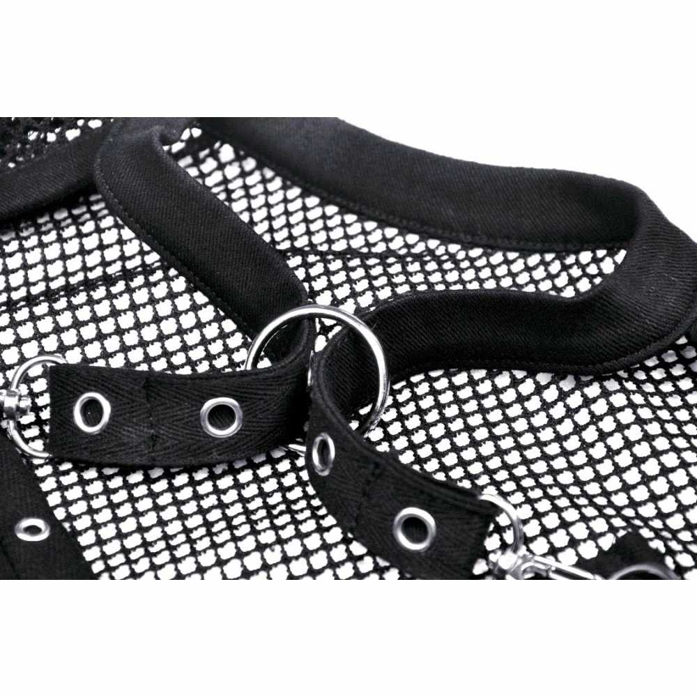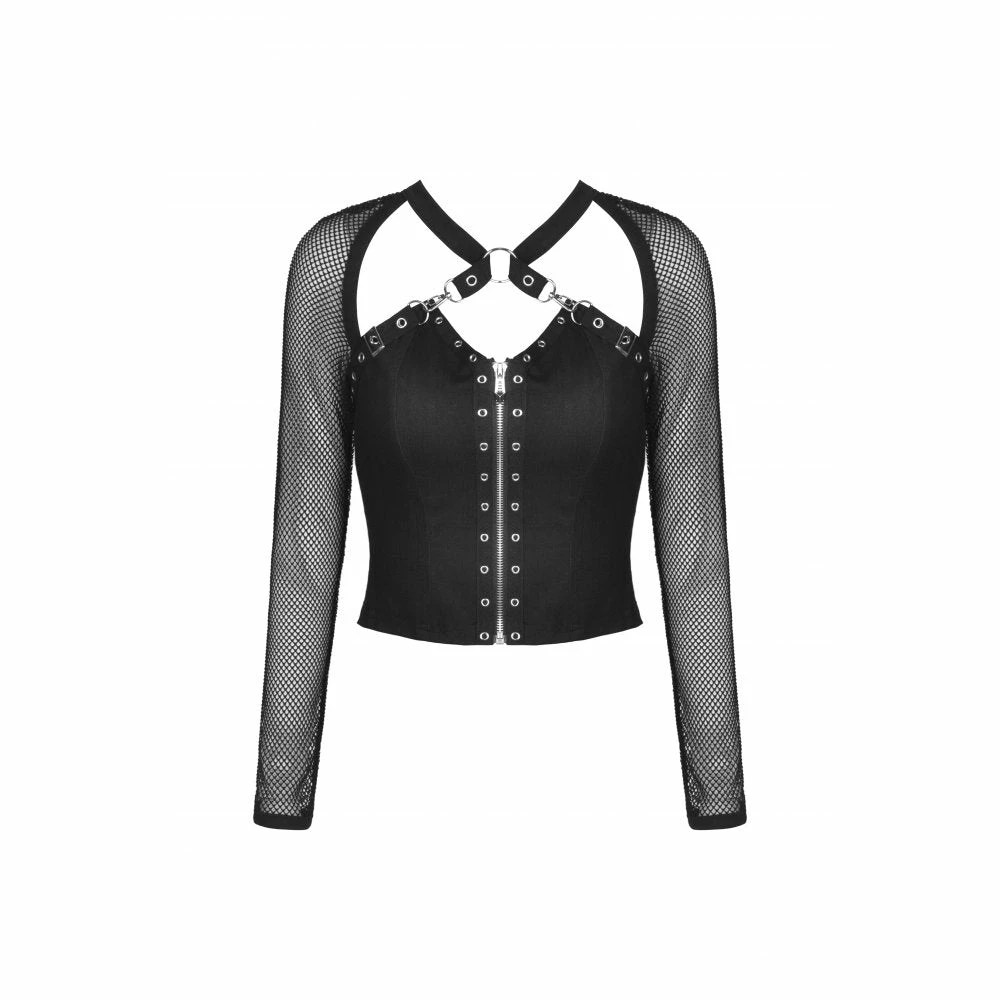 Seductive black top with long mesh sleeves from Dark in Love. This stunning and edgy top features strap detailing and is made from a slightly stretchy fabric that is fitted to show off your figure. Looks amazing on with a full zip up front!