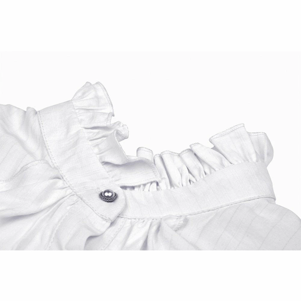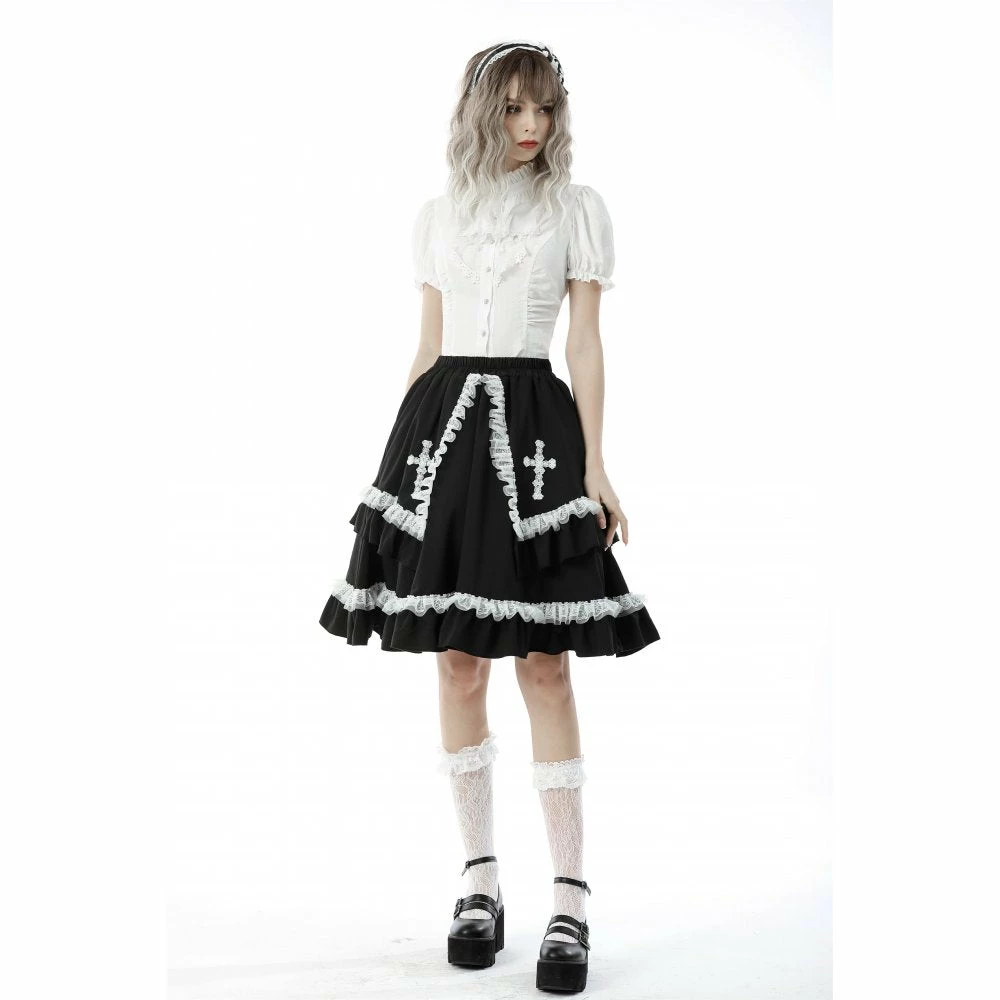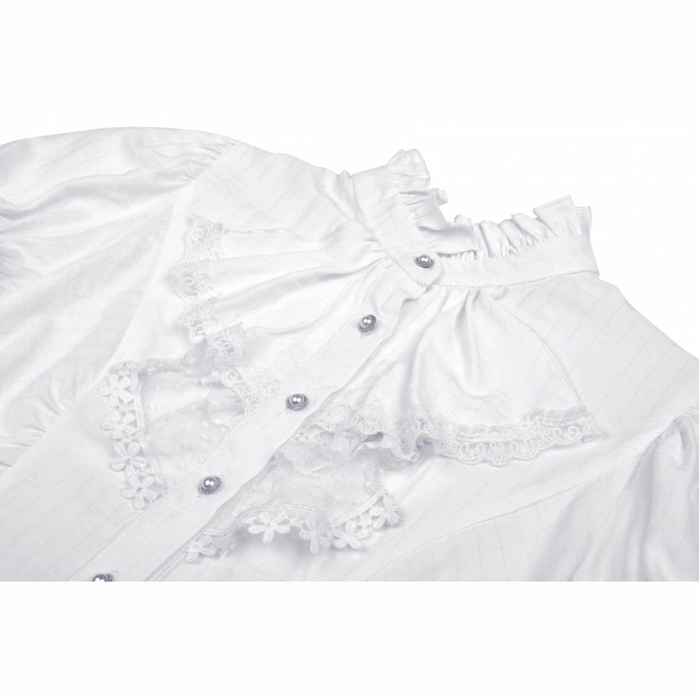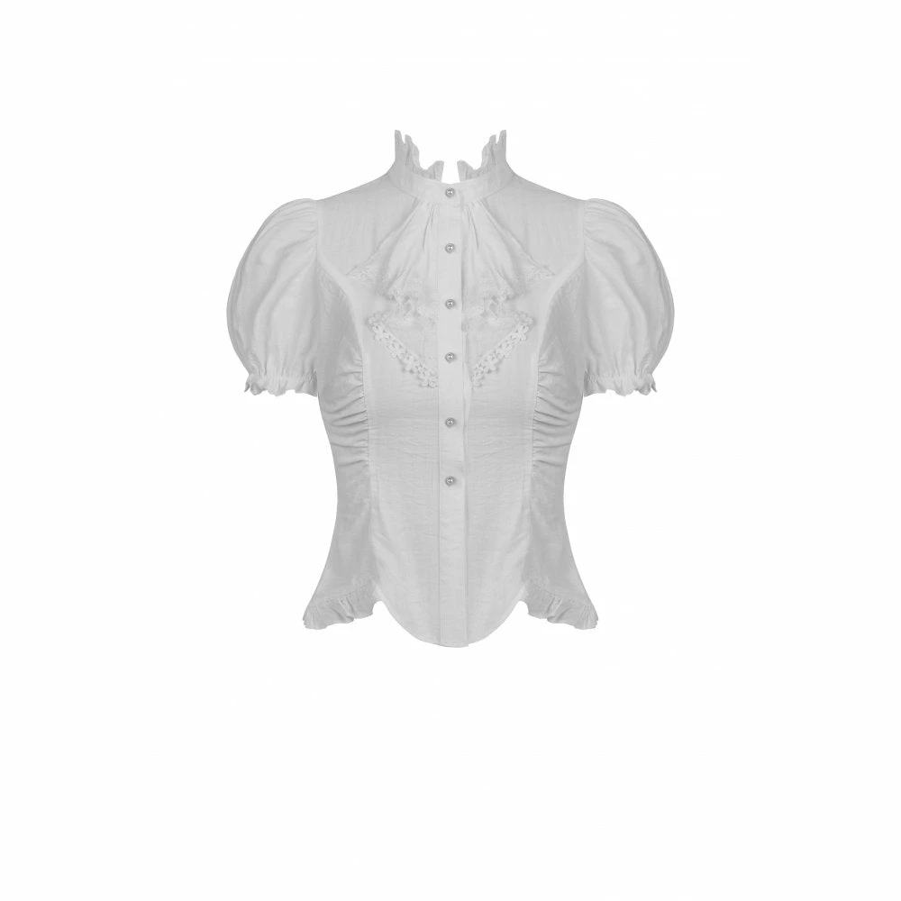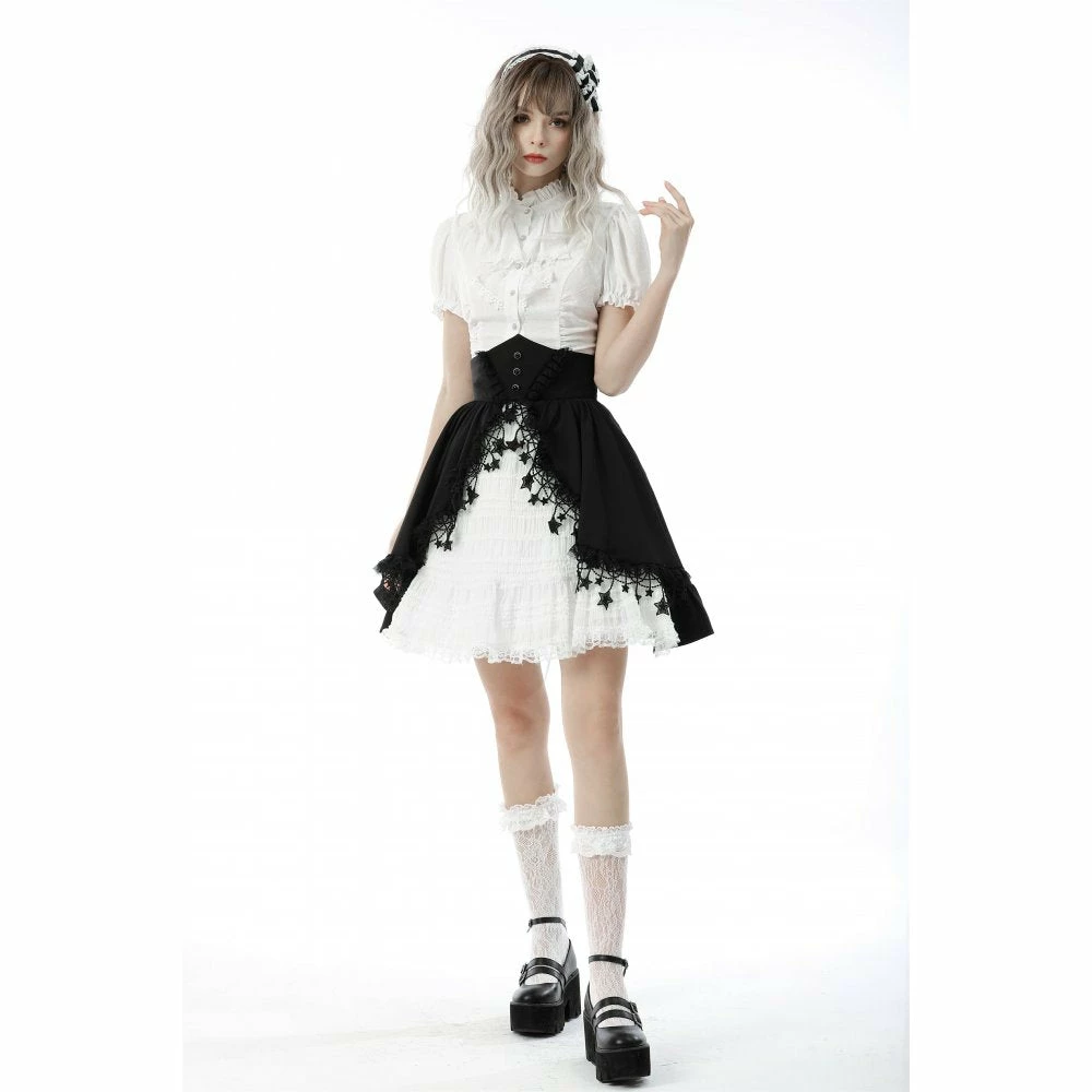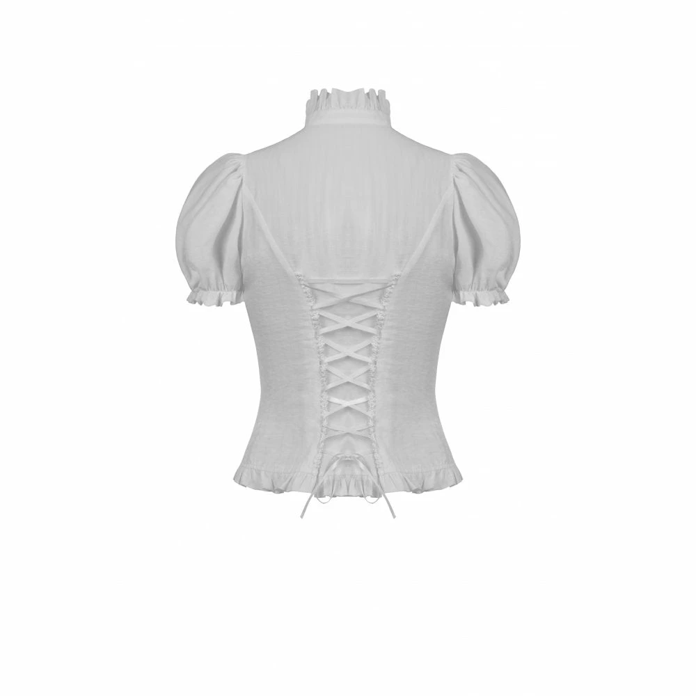 Lovely fitted blouse from Dark in Love featuring short puff sleeves, ruffle collar and princess seams. For the perfect fit and fabric composition, please see Dark in Loves size guide in the images.