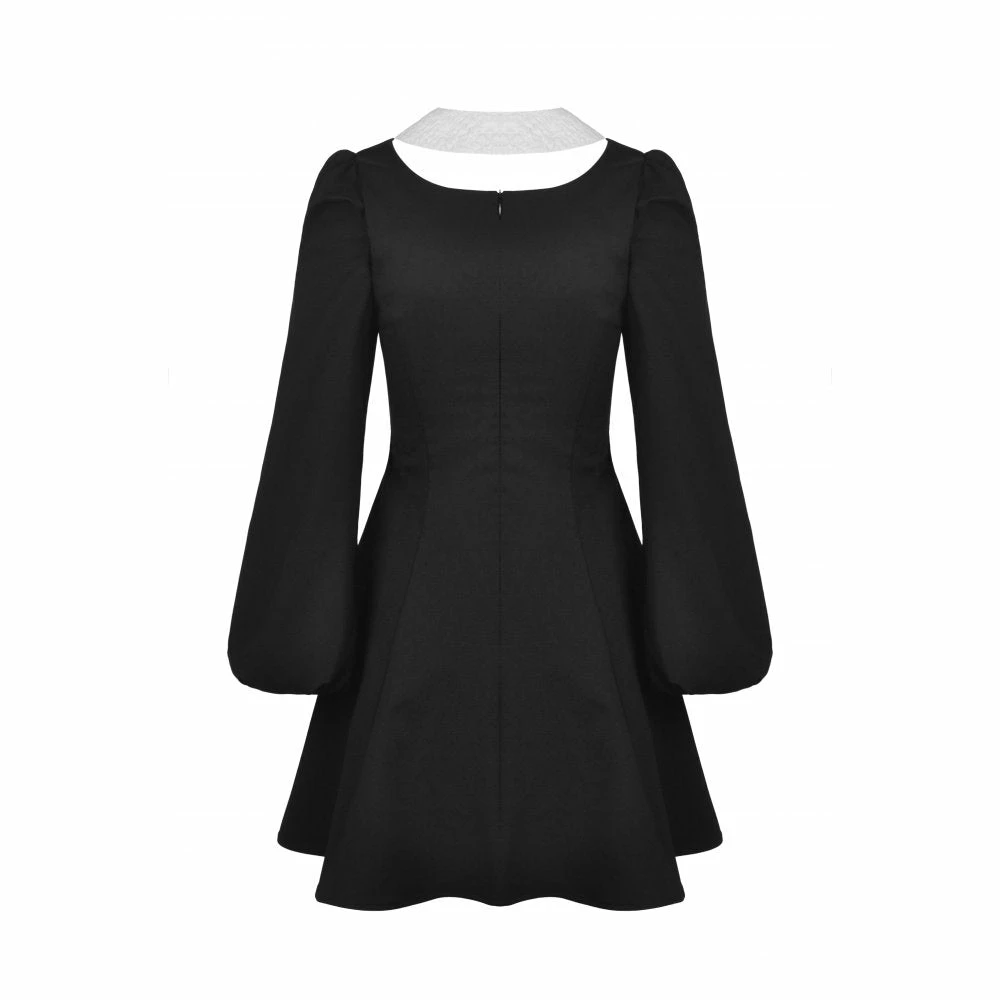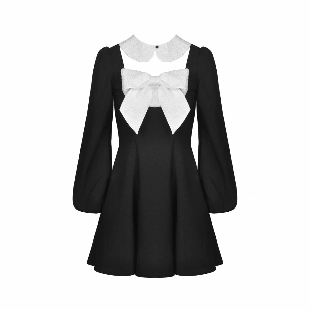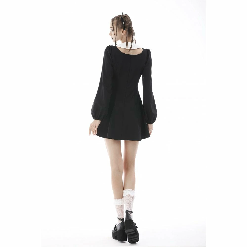 Gorgeous black mini dress from Dark In Love with chest cut out and white bowknot and detachable collar! This bewitching black mini dress features long bell sleeves and dramatic white contrast fabric plus a flirty chest cut out! The fabric has a slight stretch for the perfect fit!