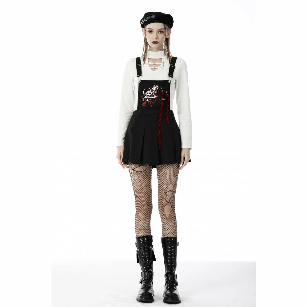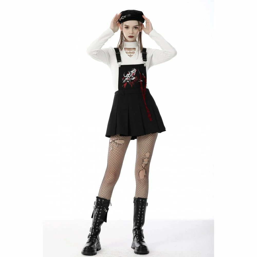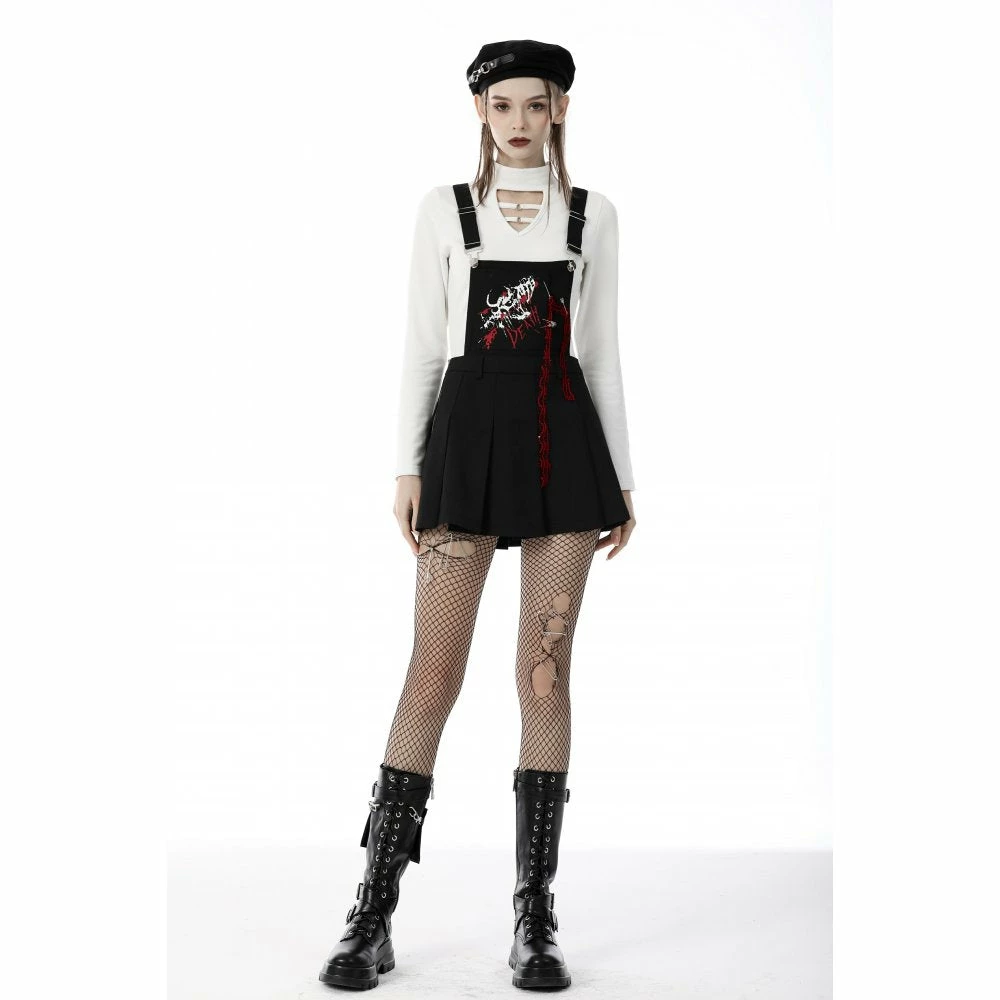 Striking pleated pinafore dress from Dark in Love featuring adjustable straps and side zip fastening. With an amazing print and safety pin detail to the bib, this fabulous dress looks great on. For the perfect fit and fabric composition, please see Dark in Loves size guide in the images.