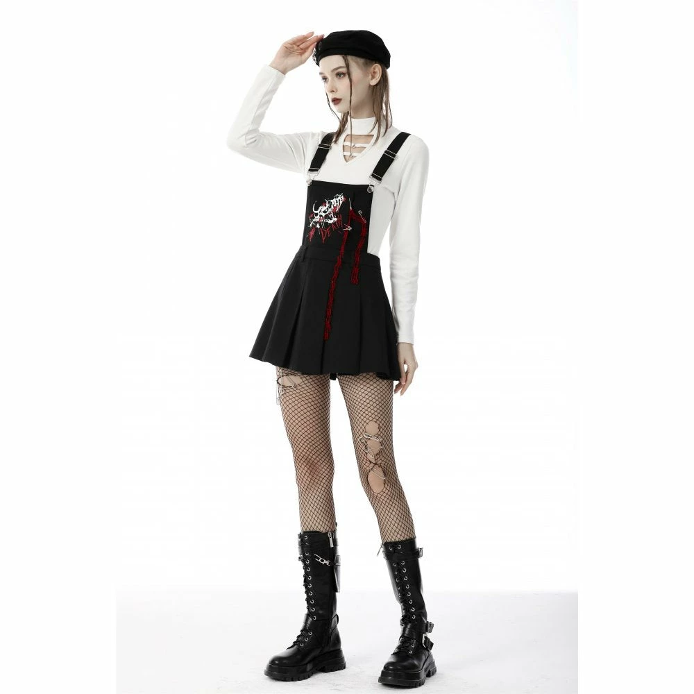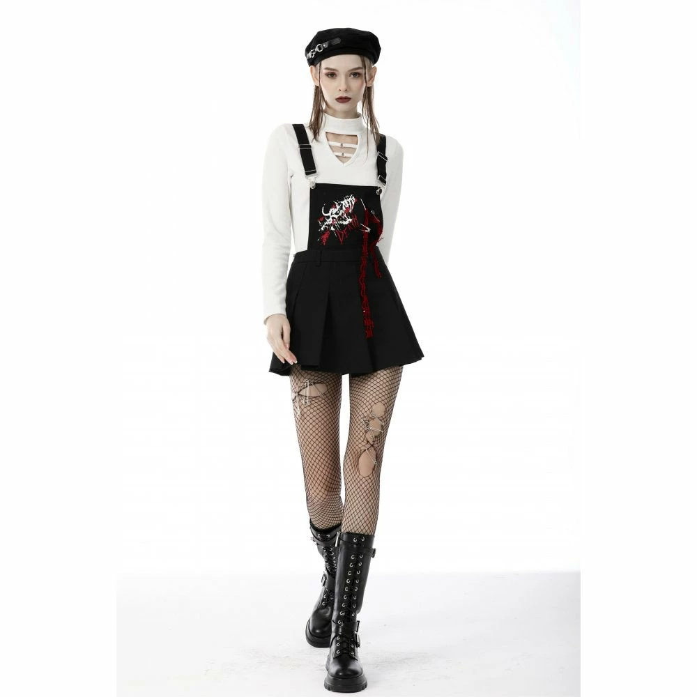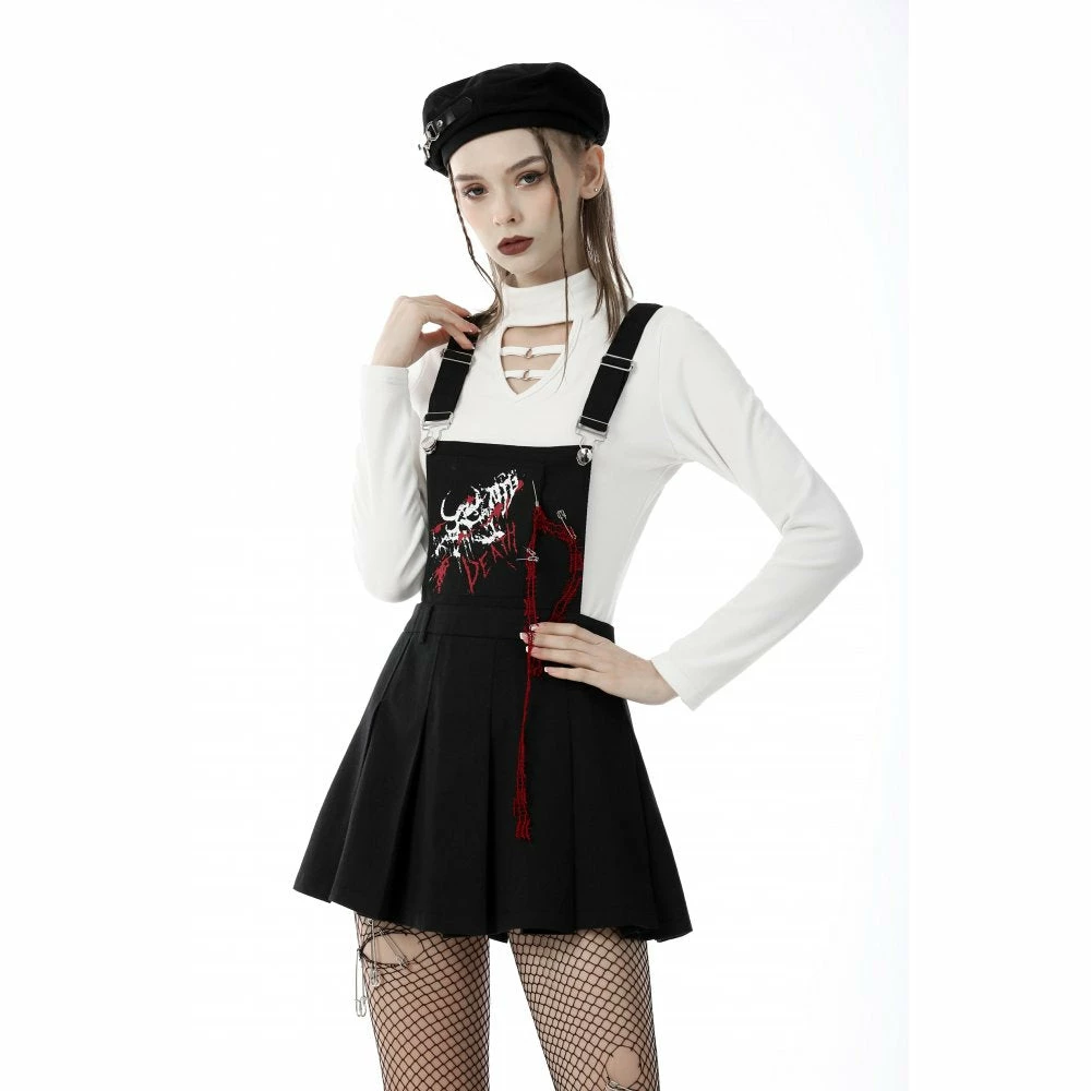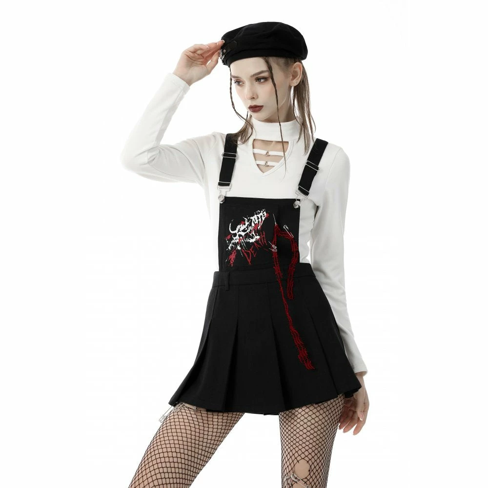 Striking pleated pinafore dress from Dark in Love featuring adjustable straps and side zip fastening. With an amazing print and safety pin detail to the bib, this fabulous dress looks great on. For the perfect fit and fabric composition, please see Dark in Loves size guide in the images.