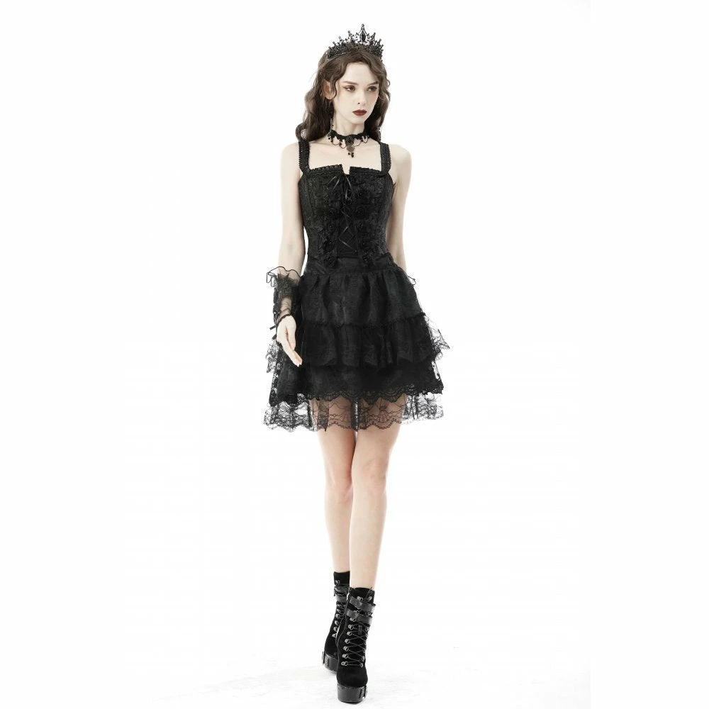 Fabulous mini skirt from Dark in Love featuring satin & lace layers and an elasticated waistband. For the perfect fit and fabric composition, please see Dark in Loves size guide in the images.