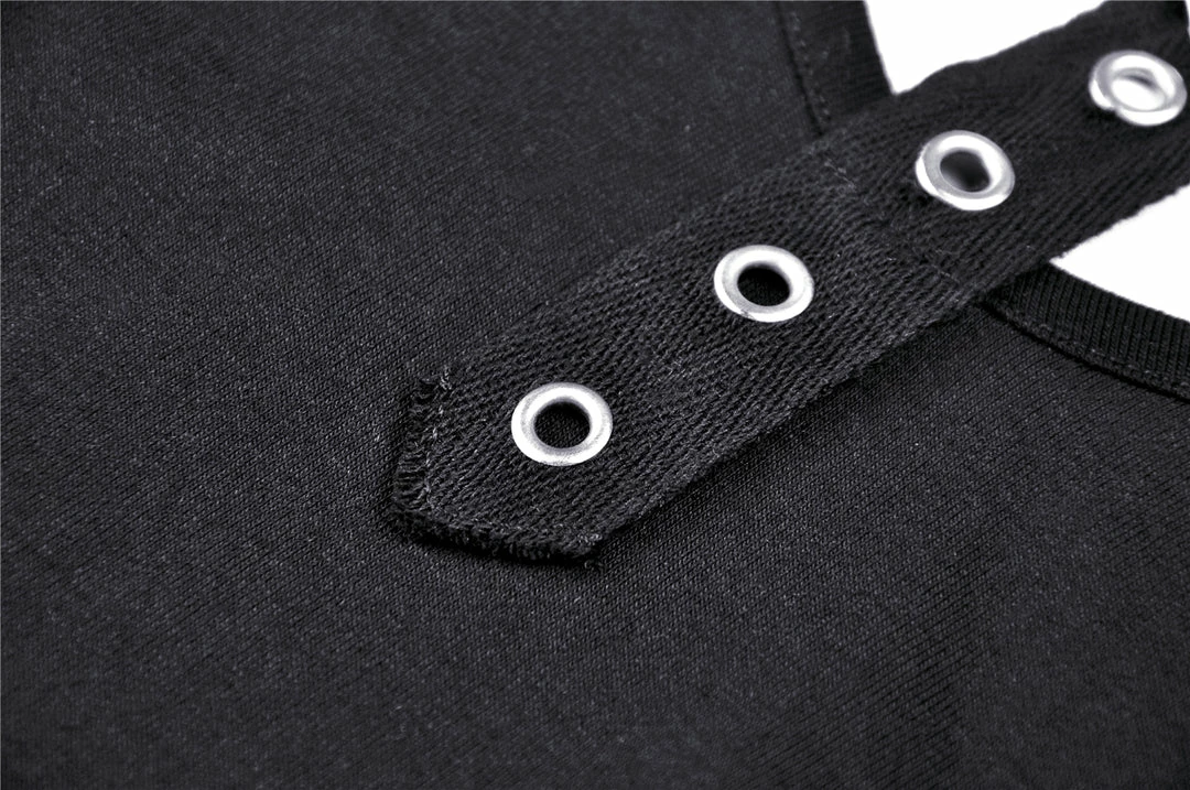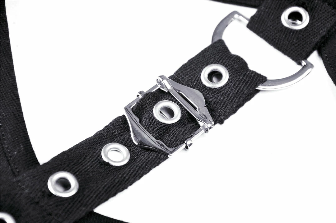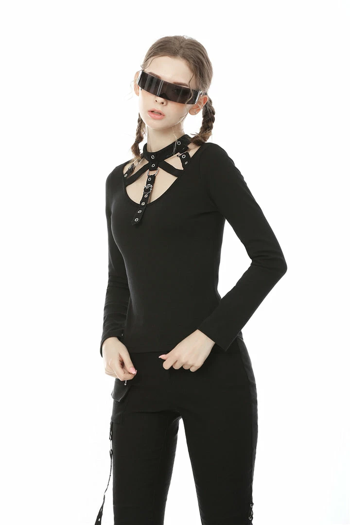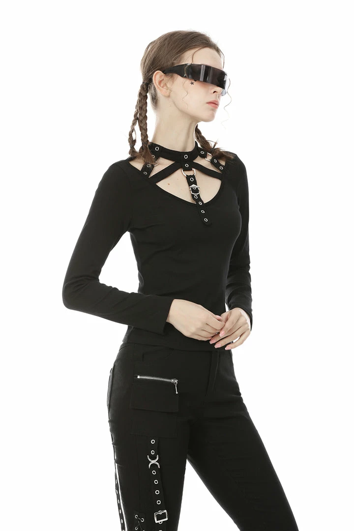 Lovely soft cotton mix top from Dark in Love featuring long sleeves and multiple strap detailing to the decollotage. For the perfect fit please see Dark in Loves size guide in the images.