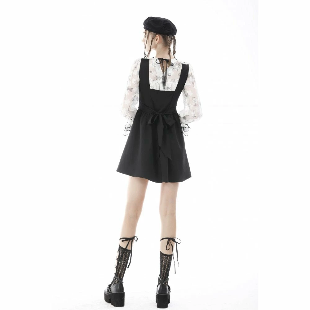 Wow your Valentine with this sexy black sleeveless mini dress with front heart cut with ribbon detailing out from Dark in Love. This elegant yet edgy black mini dress features a flowing skirt with ruffles, gathered in waist and slight stretch for the perfect fit! It also has a ribbon tie back and looks killer on a night styled with boots or heels!