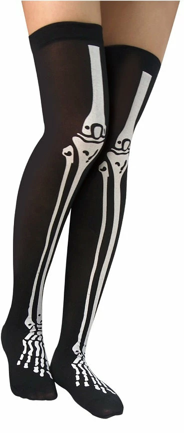 Fantastic black stockings from Gothic Attitude with contrasting white bones print.