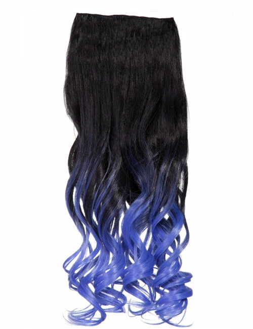 High Quality, excellent value synthetic clip in hair weft in a black and blue two-tone. This stunning, 18 inch long, thick, wavy hair weft has 4 clips to keep it in place and adds a full hair of hair to take your style to the next level. It looks great under bright or natural hair, especially if your hair is layered and it can be easily cut to suit your hair style.