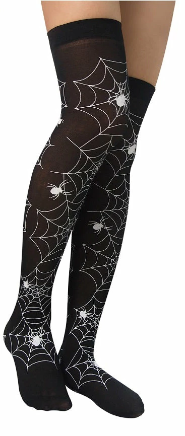 Fantastic black stockings from Gothic Attitude with contrasting white spiders and webs print.