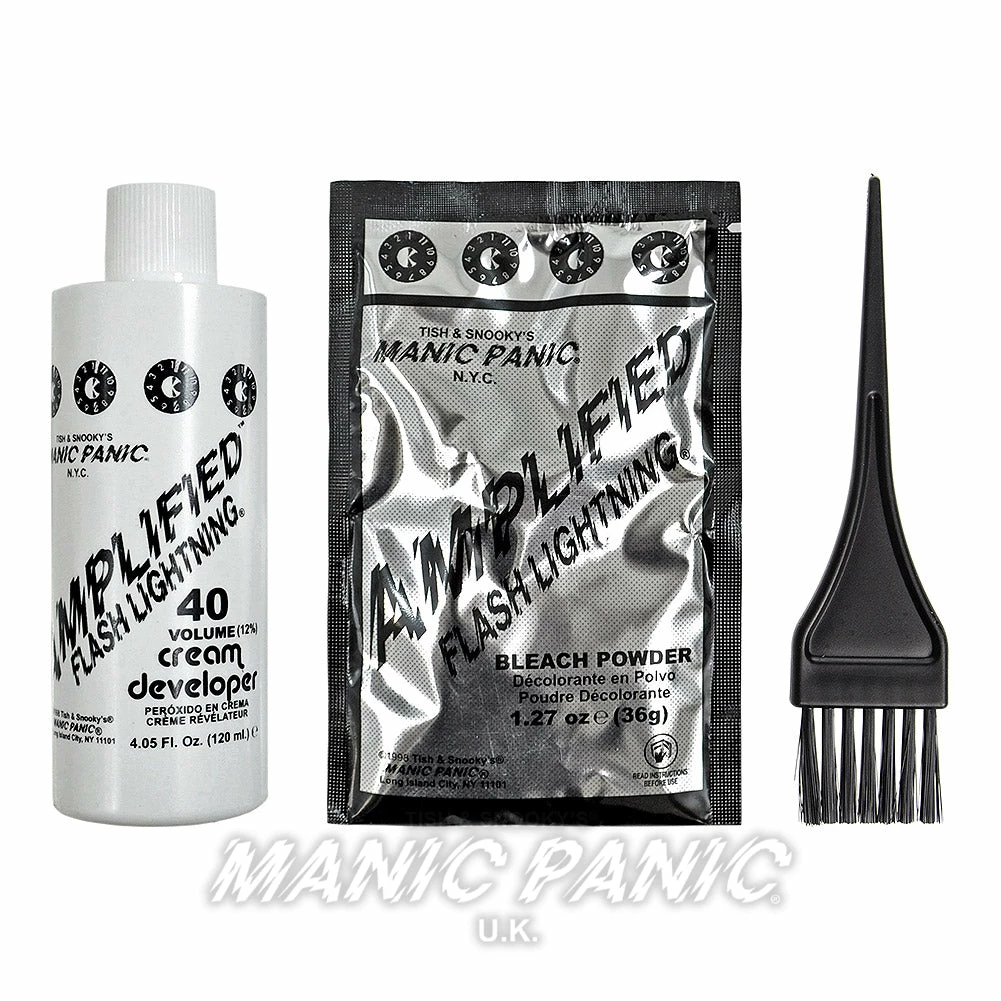A Manic Panic Flash Lightning kit is the first step to reinventing your hairstyle. This bleach kit is designed to lighten hair and remove your natural shade to create a pale base, ready for applying vibrant hair dyes. This all-in-one hair bleach kit works to make bleaching hair a simpler process and it is a vegan-friendly formula.