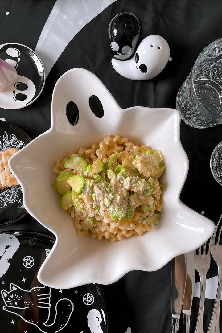 Spookily cute! This ceramic gloss white Ghost serving dish is a must-have for your home and kitchen! Also makes a fabulous gift!