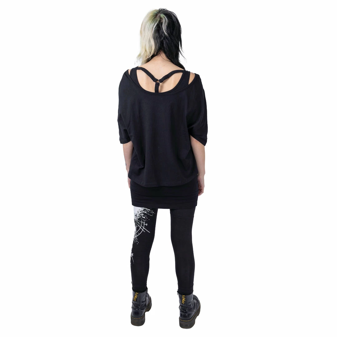 Versatile and stylish longline black top from Innocent. This must-have black top features statement strap designs. Made from a soft cotton fabric with a loose relaxed fit. Looks awesome paired with leggings and chunky boots or your favourite heels!
