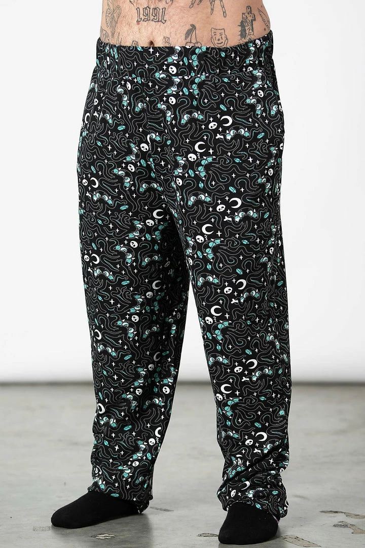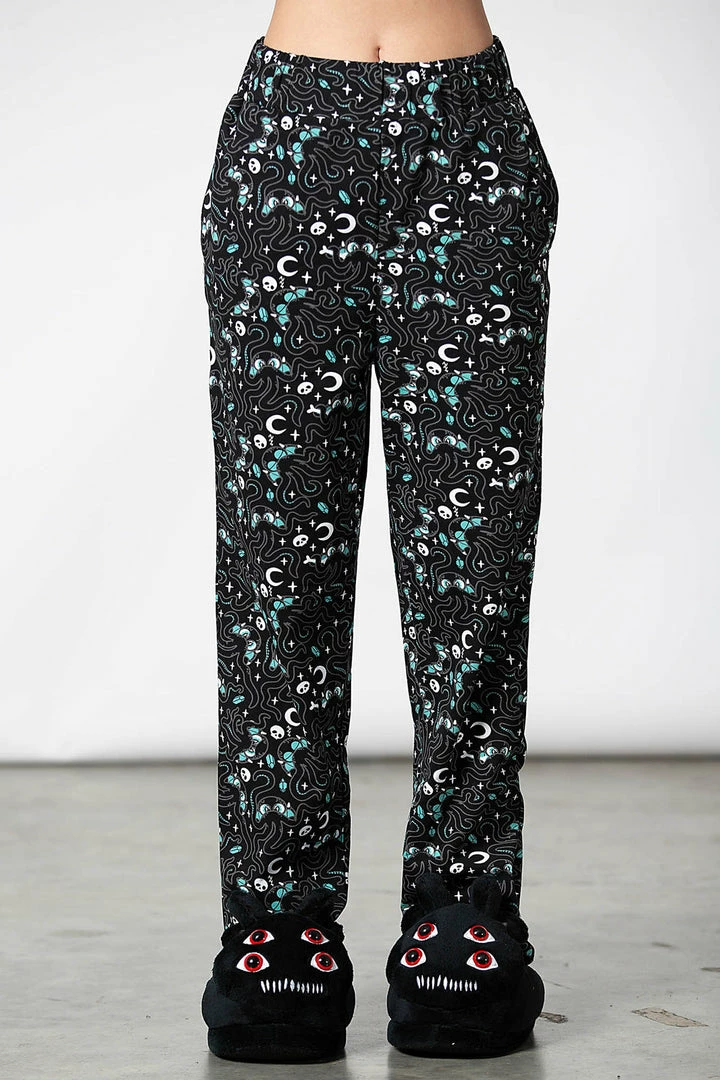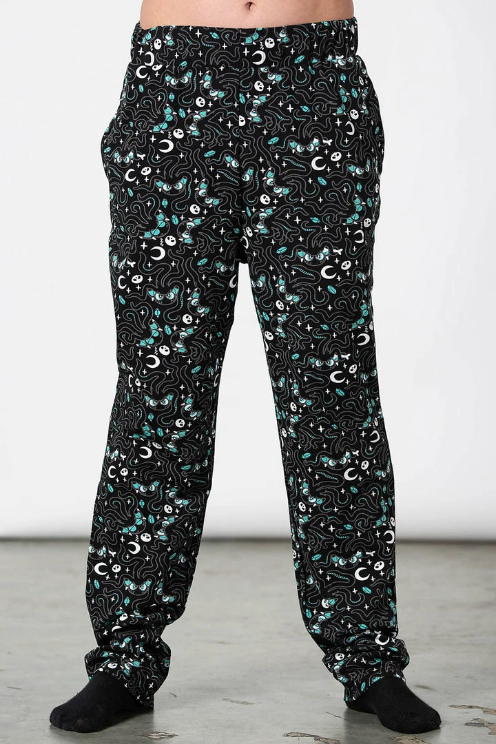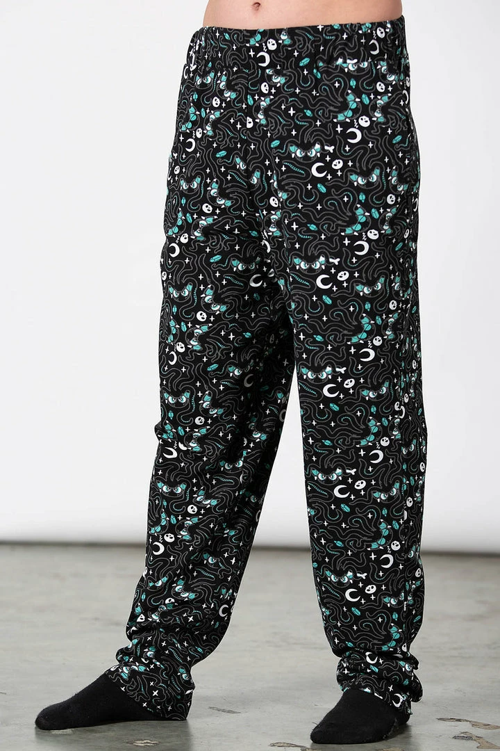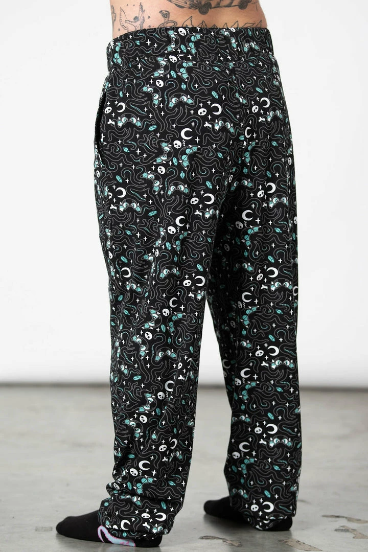 Playful and comfy black pj bottoms from Killstar with bold contrast Cthulhu pattern! These must-have bottoms are made from a soft stretchy cotton fabric with elasticated waistband and pockets for a comfortable relaxed fit that looks great on everyone! The perfect thing for lounging in style, get the ‘Cthulhu” tops for the complete outfit! Ideal as an alternative to average pyjama sets!