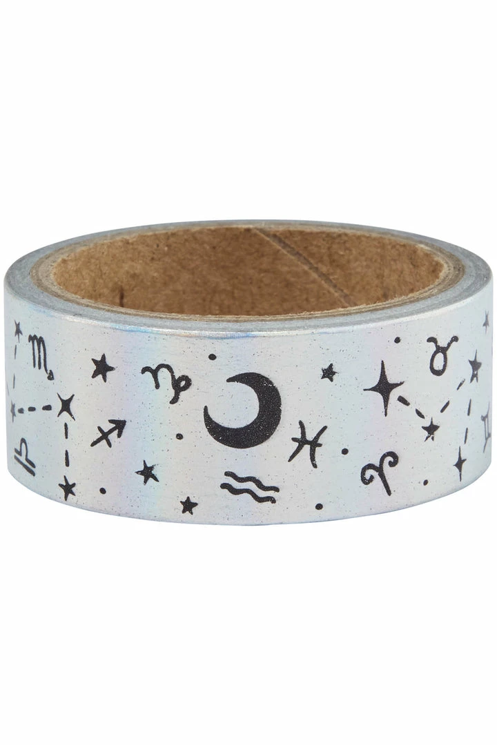 Killstar Cosmic Studies Vinyl Craft Tape features a holgraphic with black contrast print. This cosmic tape will add extra flair to your crafting and gift wrap!