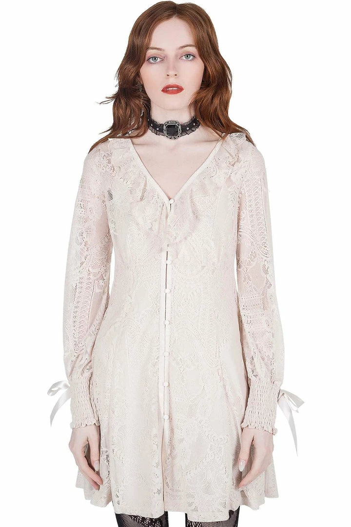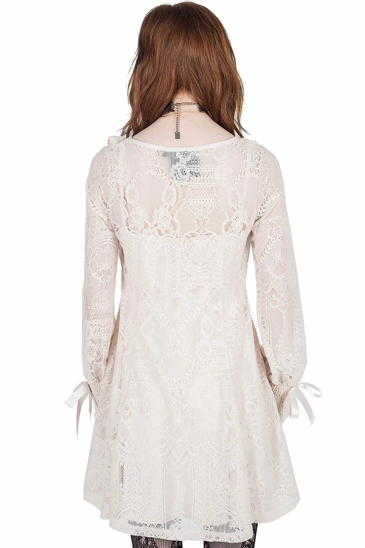 Killstar Cybele Lace Dress in Ivory: The amazing Cybele lace dress from Killstar channels a vintage vibe with its fitted yet flowing elegant style.