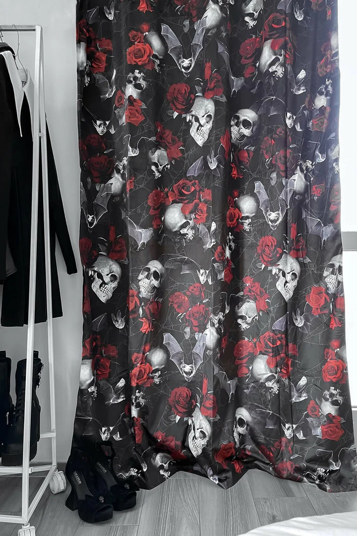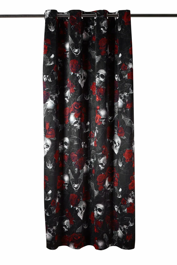 Complete your dream home with this聽gorgeous black curtain from聽Killstar.聽Luxurious long black velour curtain panel from Killstar with an elegant gothic聽white skull, bat and red rose聽print. Made from a super soft fabric for ultimate comfort and style. The perfect thing to decorate your home or makes an awesome gift!