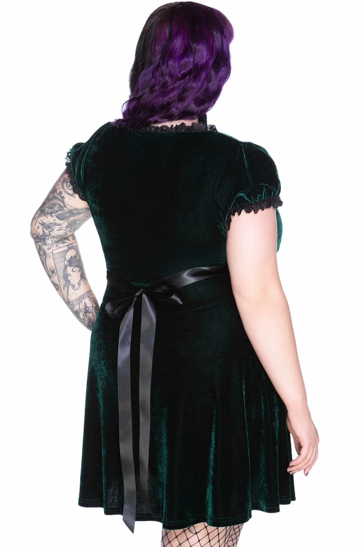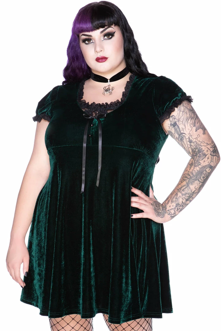 Killstar Heather Velvet Babydoll Dress in Emerald Green: The amazing Heather dress is made from an ultra soft luxury velvet and features a lovely delicate black lace trim!