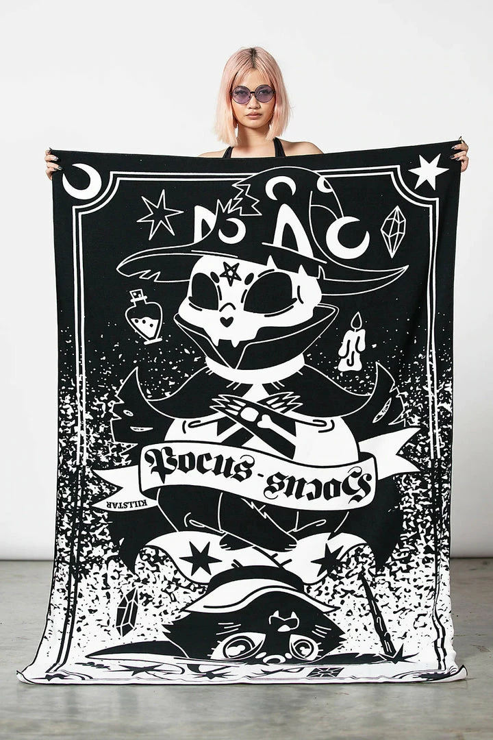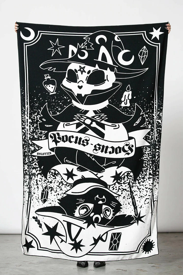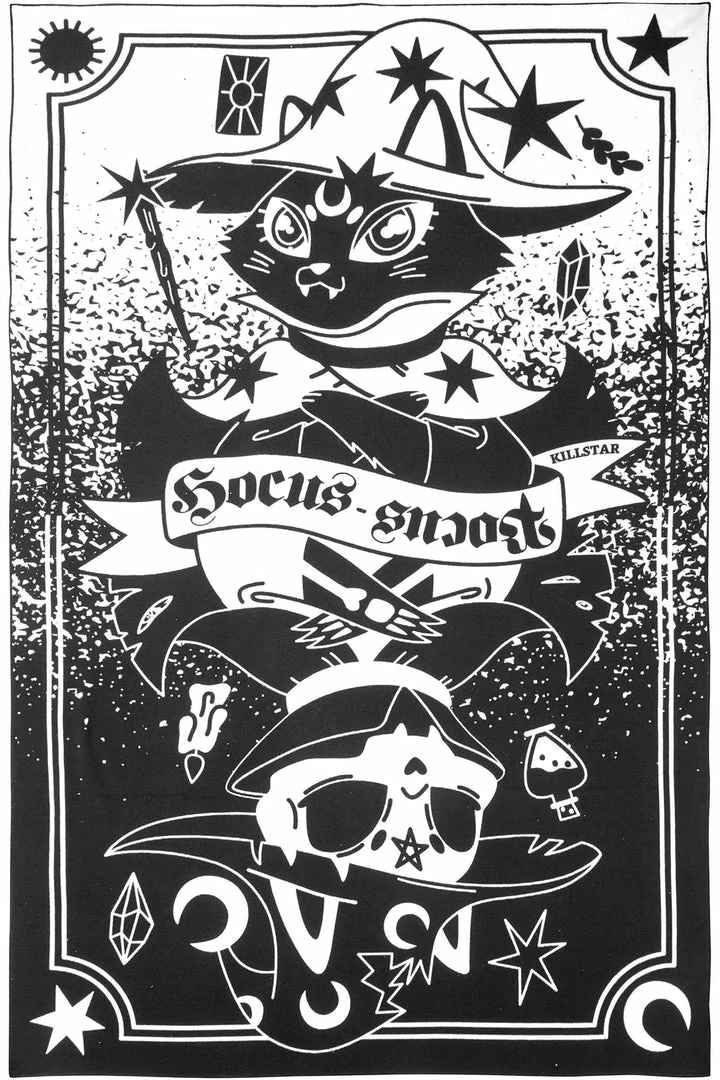 Your must-have gothic Meow-gical beach towel from Killstar in black and white contrast print and “Hocus Pocus” script. This extra large black and white rectangular shaped beach towel is perfect for laying out! Spooky & sumptuously soft beach towel from Killstar, featuring a bold contrast graphic – the short, lightweight pile ensures it folds down to a compact size for ease of packing and dries rapidly.