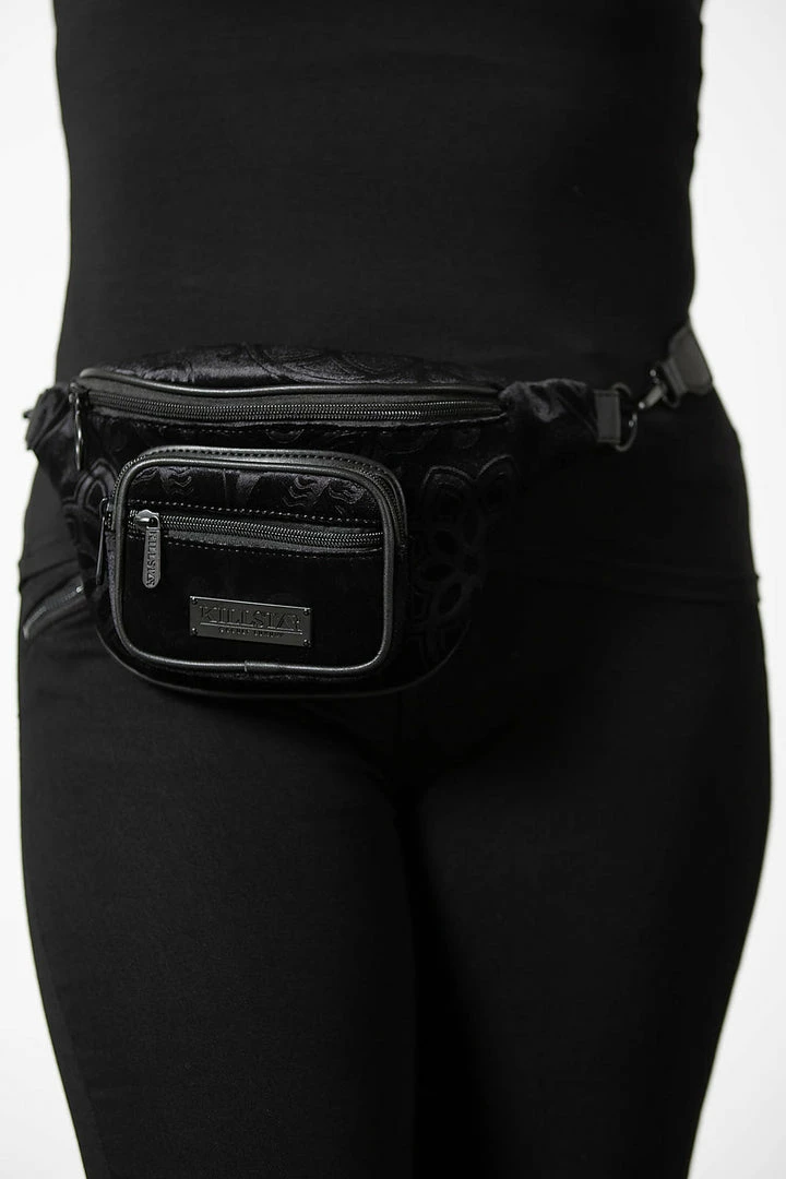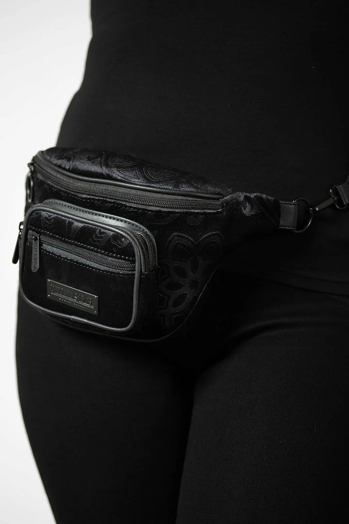 This gorgeous and versatile waistbag is made from a luxury velvet material with adjustable waist strap with O-ring and chain. This striking bag features multiple compartments and zip closure!