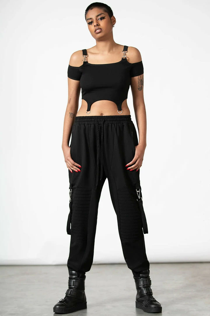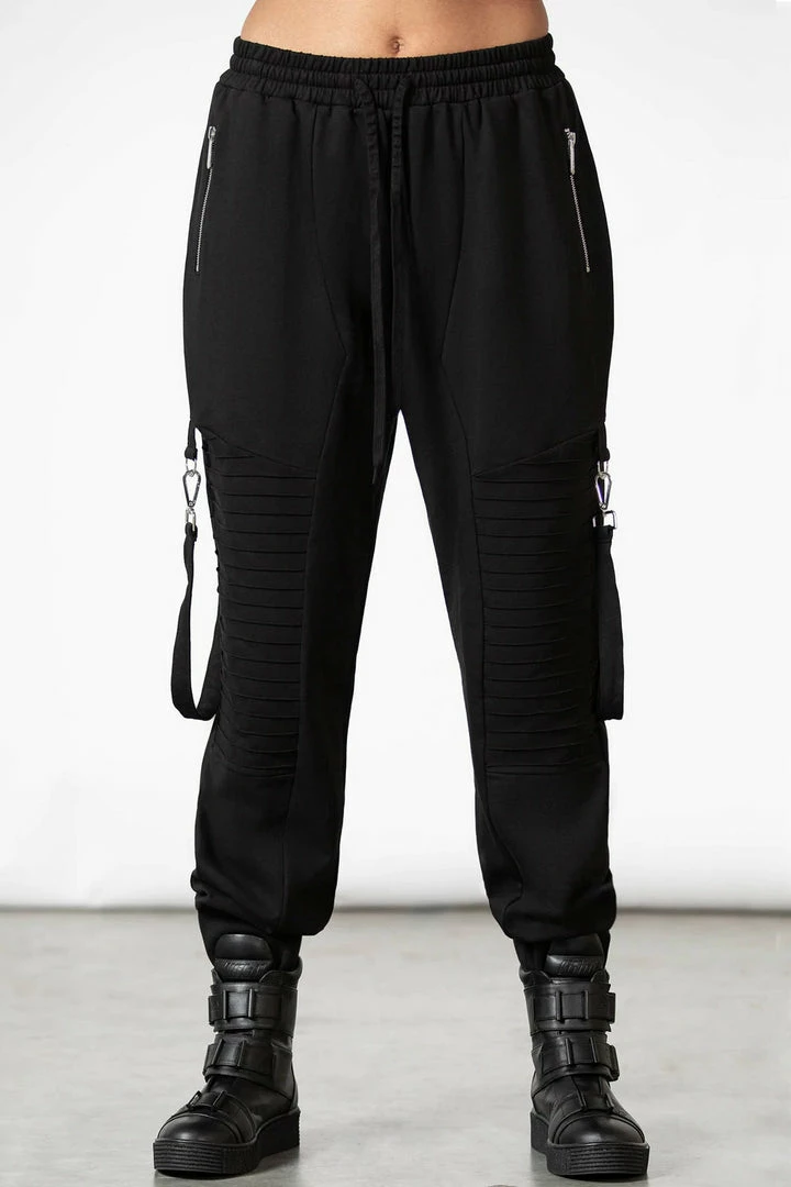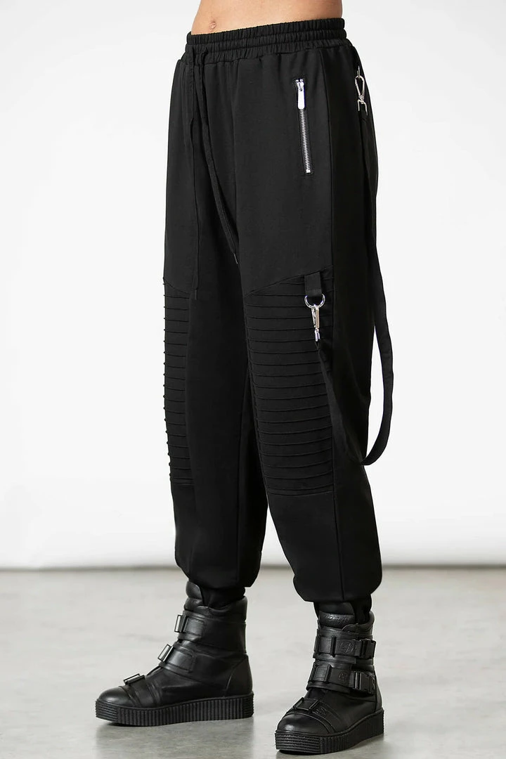 These comfy stylish black jogging bottoms are made from a soft touch cotton fabric with a zip pockets, cuffs and a relaxed fit that looks good on everyone! These unisex black tracksuit bottoms feature a drawstring waistband and removable straps. Buy a size up for an oversized relaxed look!