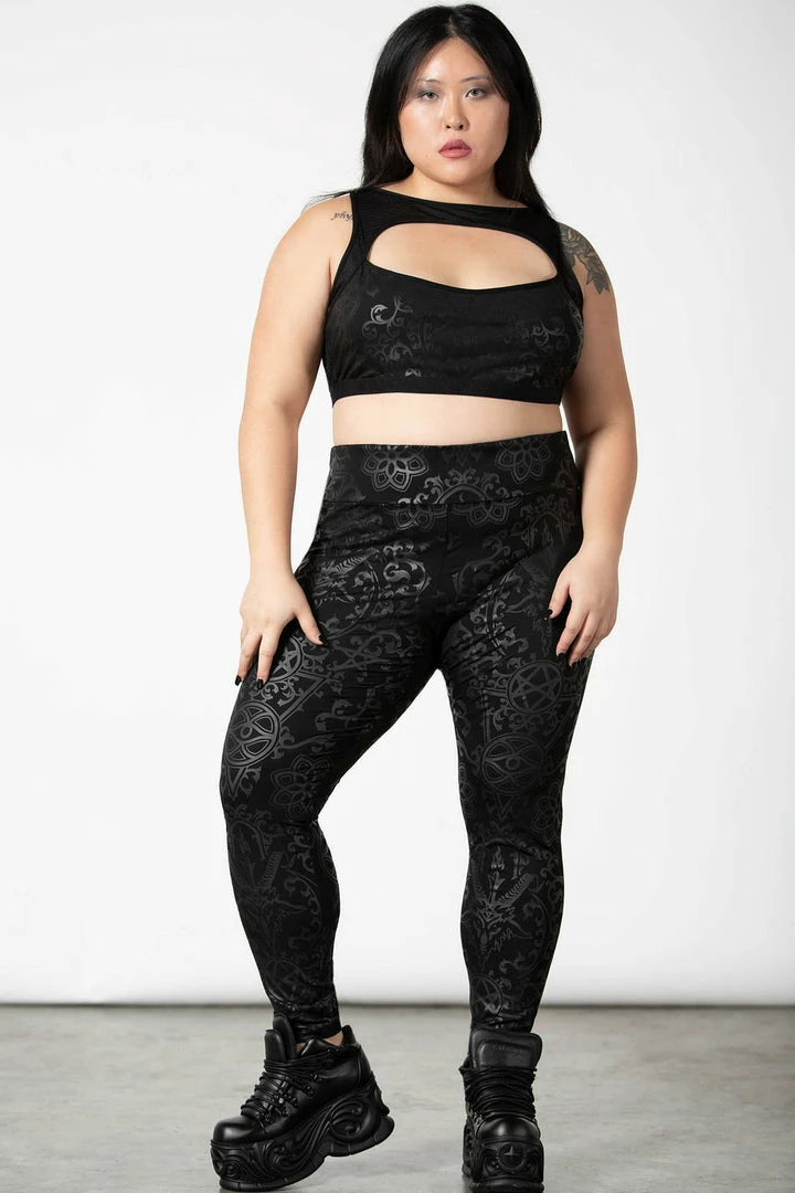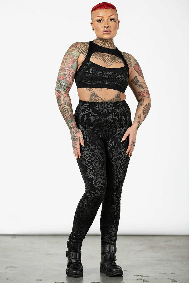 Beautiful black sports bra from Killstar that is made from a stretchy soft activewear fabric for a great look and perfect fit! Detailing such as the black on black statement print, breathable mesh racer back and keyhole detail on the front make this amazing bra perfect for working out and hanging out! Looks awesome with Killstar Bad Dream shorts.