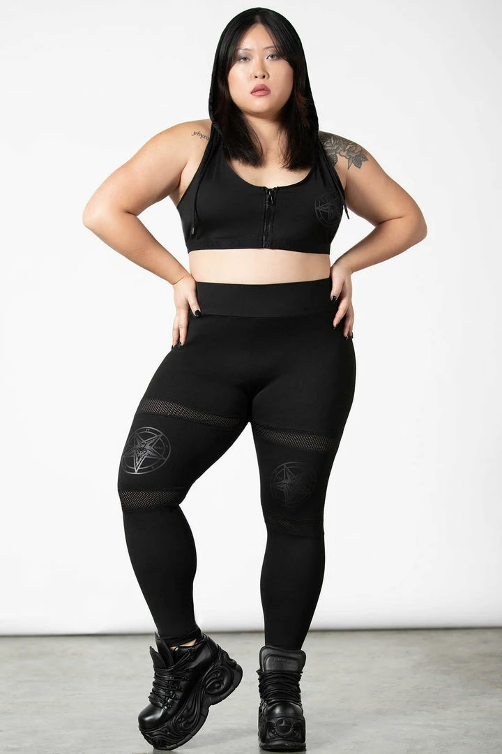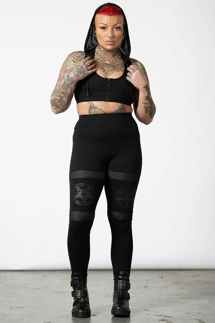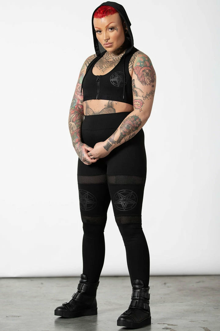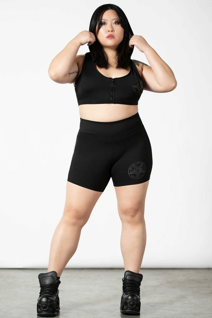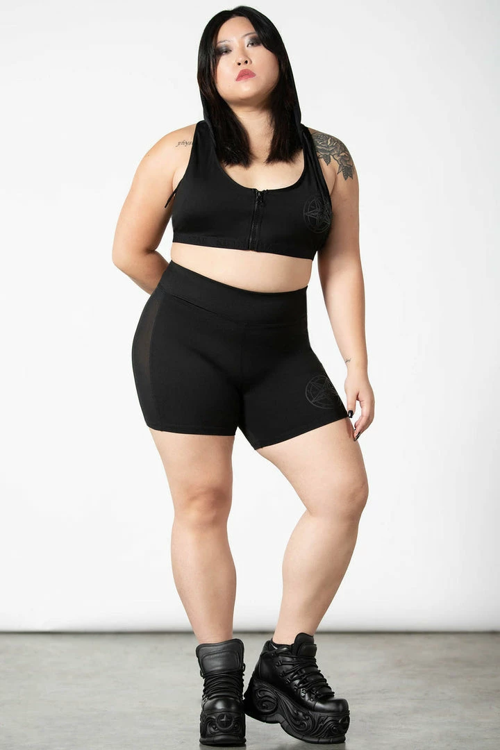 Gorgeous black sports bra from Killstar that is made from a stretchy soft activewear fabric for a great look and perfect fit! Detailing such as the mesh hood, breathable mesh racer back and zip up front make this amazing bra perfect for working out and hanging out! Looks awesome with Killstar Bad Dream shorts.