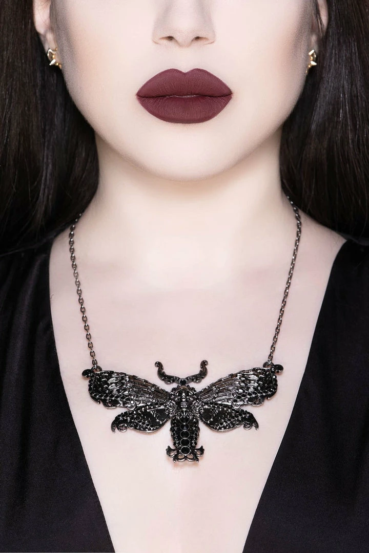 Stunning statement moth pendant by Killstar that is made from high quality alloy metal. This gorgeous dark silver coloured necklace features a detailed moth shaped pendant on a 48cm long chain and is perfect to set off your look!