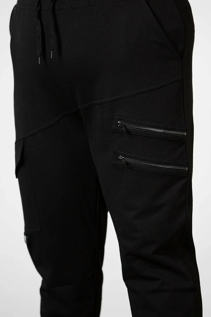 These stylish and practical black jogging bottoms are made from a luxury soft stretch fabric in a relaxed style that looks good on everyone! These longline black unisex tracksuit bottoms feature zip details with a unique seam, convenient pockets and a drawstring wide waistband.