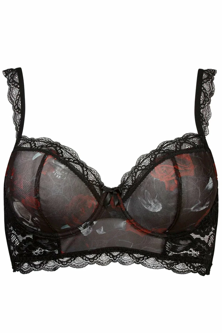 Beautiful black bra from Killstar that is made from a soft stretch lace and printed mesh fabric for a fit that is both seductive and powerful! This stunning bralet features hook and eye closure, adjustable straps, underwired cups and looks amazing on! Oh la la!