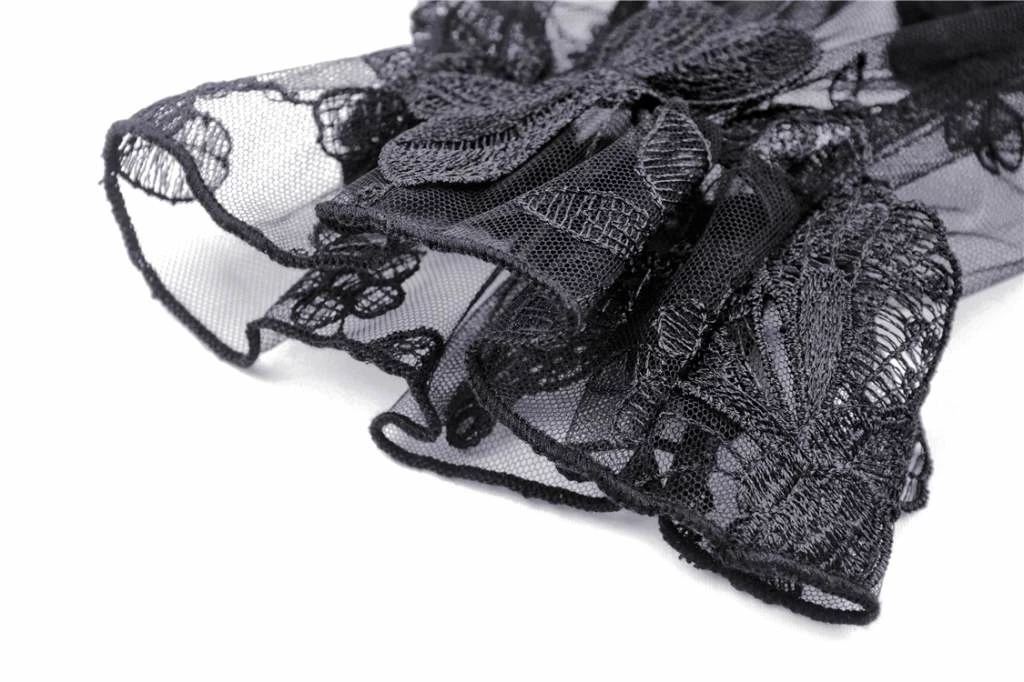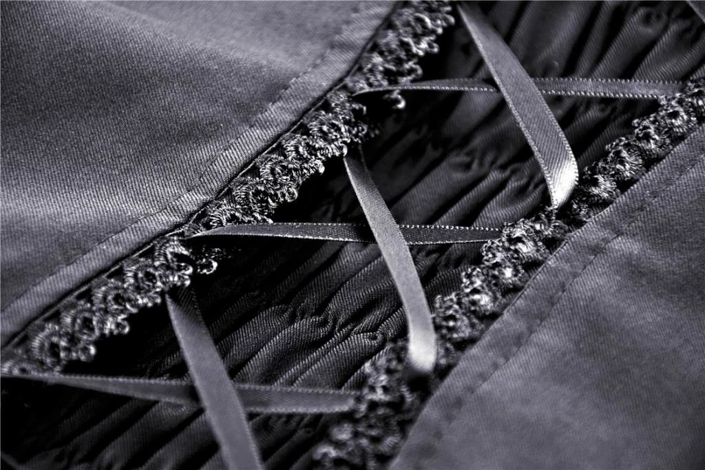 Absolutely stunning dress from Dark in Love! Featuring long delicate lace sleeves with flared cuffs and lace butterflies, bardot design with spaghetti straps, pleated effect to the bust, hidden side zip and elasticated panel to the back with corset-inspired ribbon lacing for that perfect fit.