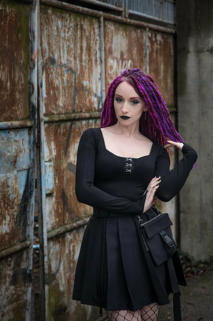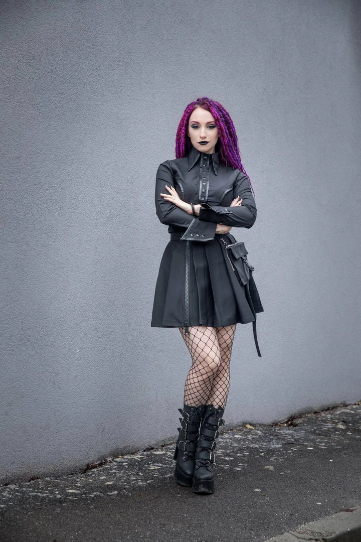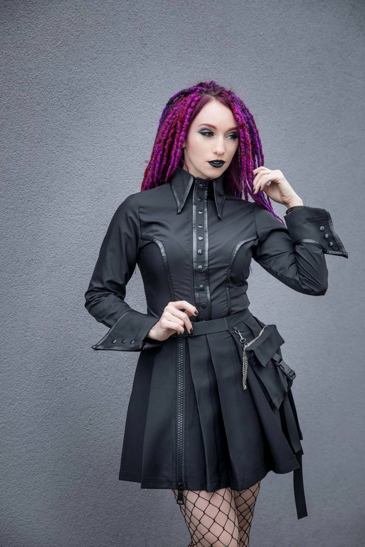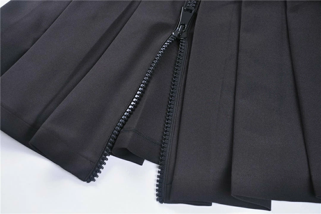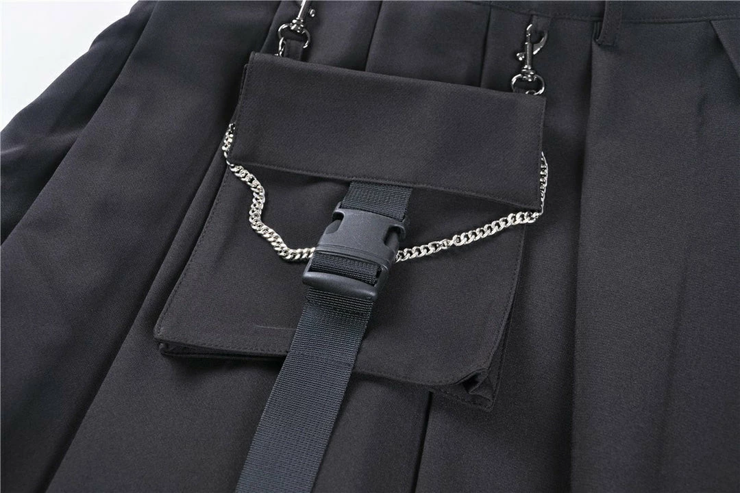 This fabulous pleated skirt from Dark in Love features a full length chunky front zip with fixed waist belt, detachable bag with buckle closure and decorative chain. Perfect for everyday wear or dress up for nights out. For the perfect fit and fabric composition, please see Dark in Loves size guide in the images.