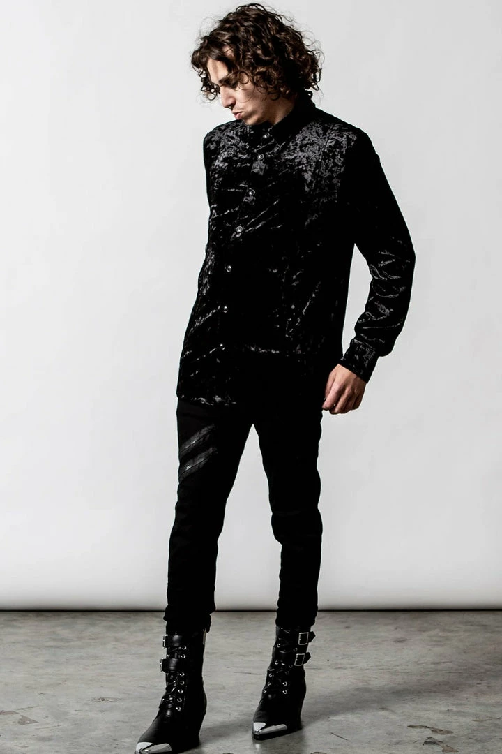 Stylish black shirt, made from a luxury crushed velvet fabric that feels great to wear for everybody! This must-have black shirt has a relaxed fit and features long sleeves, collar and button up front. Not your average black button up shirt, this looks amazing from day to night!