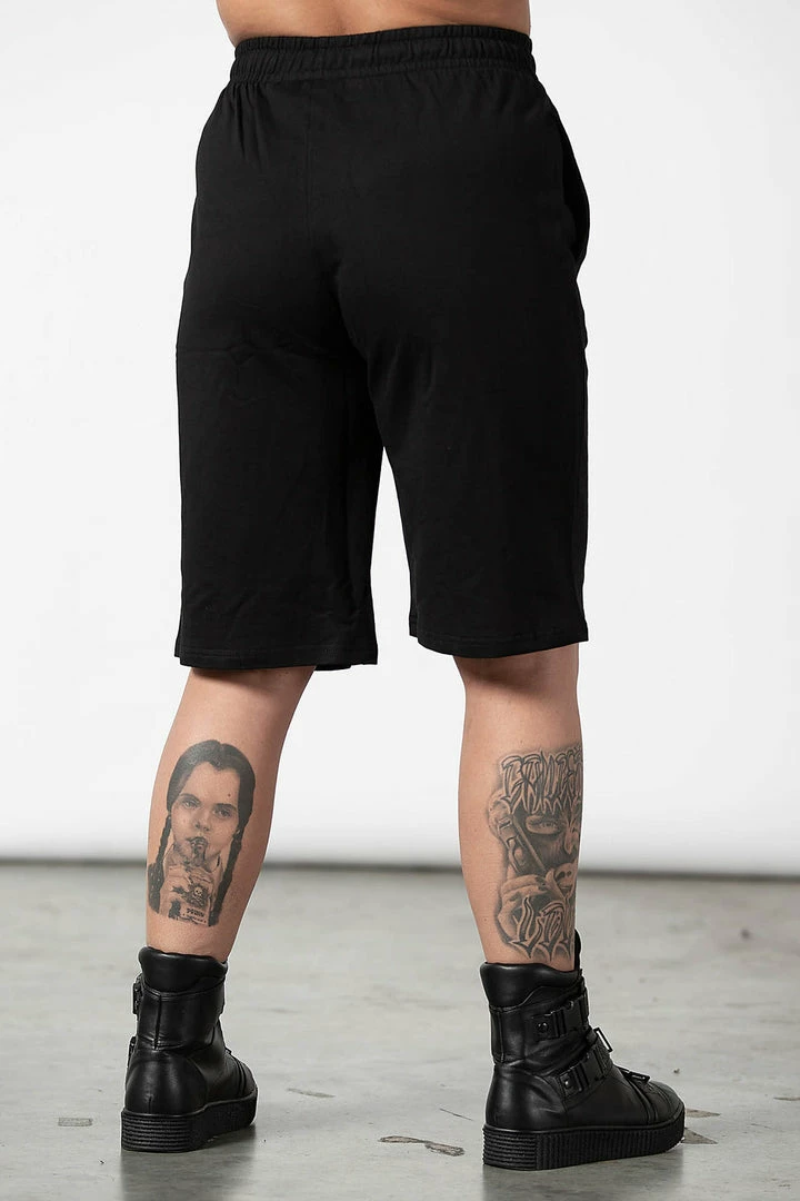These stylish and practical black shorts are made from a luxury soft cotton fabric in a long length relaxed fit that looks good on everyone! These longline black unisex shorts feature convenient pockets and a drawstring wide waistband.