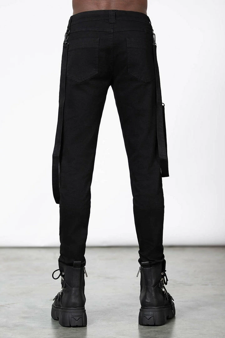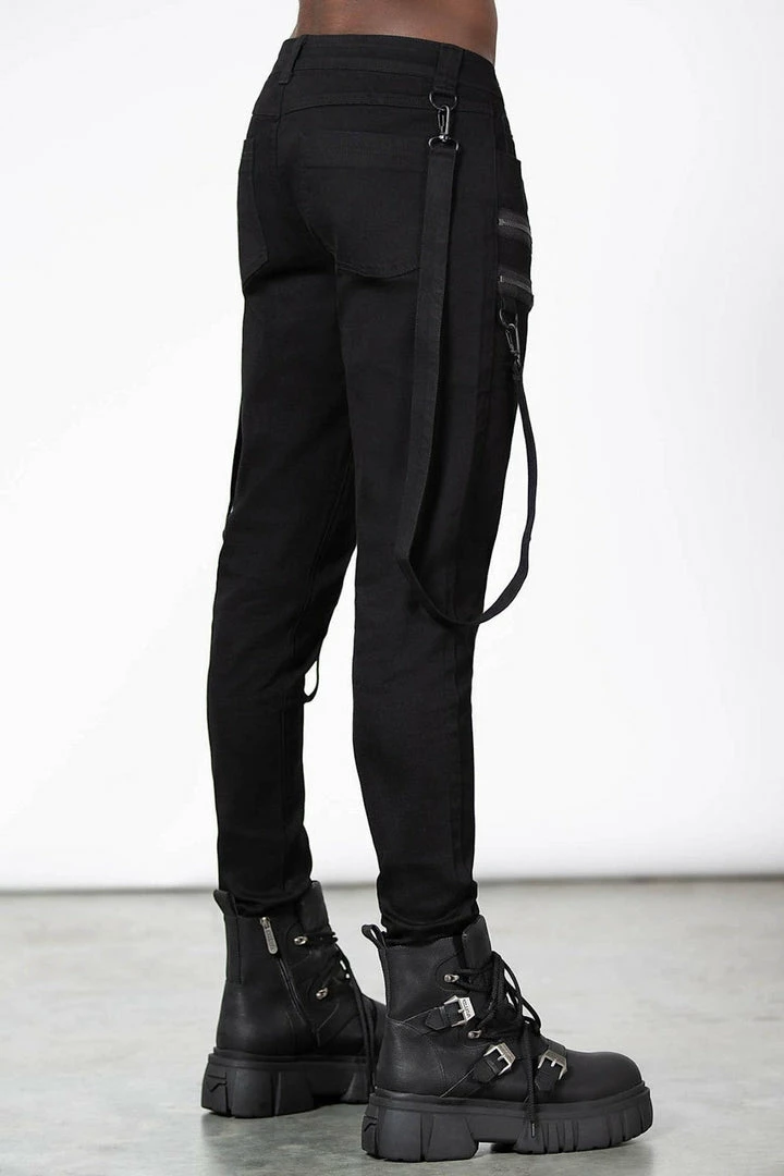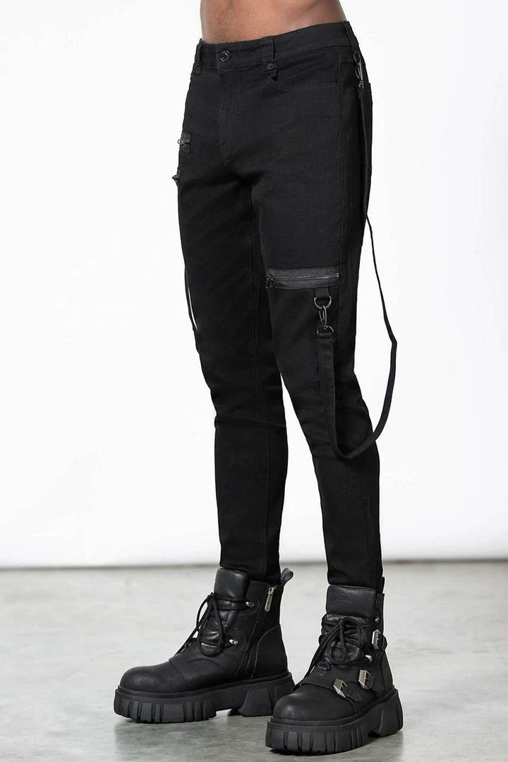 These stylish and versatile black jeans are made from soft stretch denim with a fitted style that looks great on everyone. These jeans feature classic 5 pocket styling and zip fly and also have metal hardware plus removable straps and zip details.