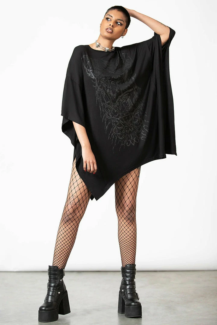 Stylish and comfortable black tunic from Killstar that is made from a super soft fabric with a black on black print. This relaxed fit long tunic can be worn as a top or a dress if you feel daring and features a relaxed fit with hanky hem for effortless everyday style.
